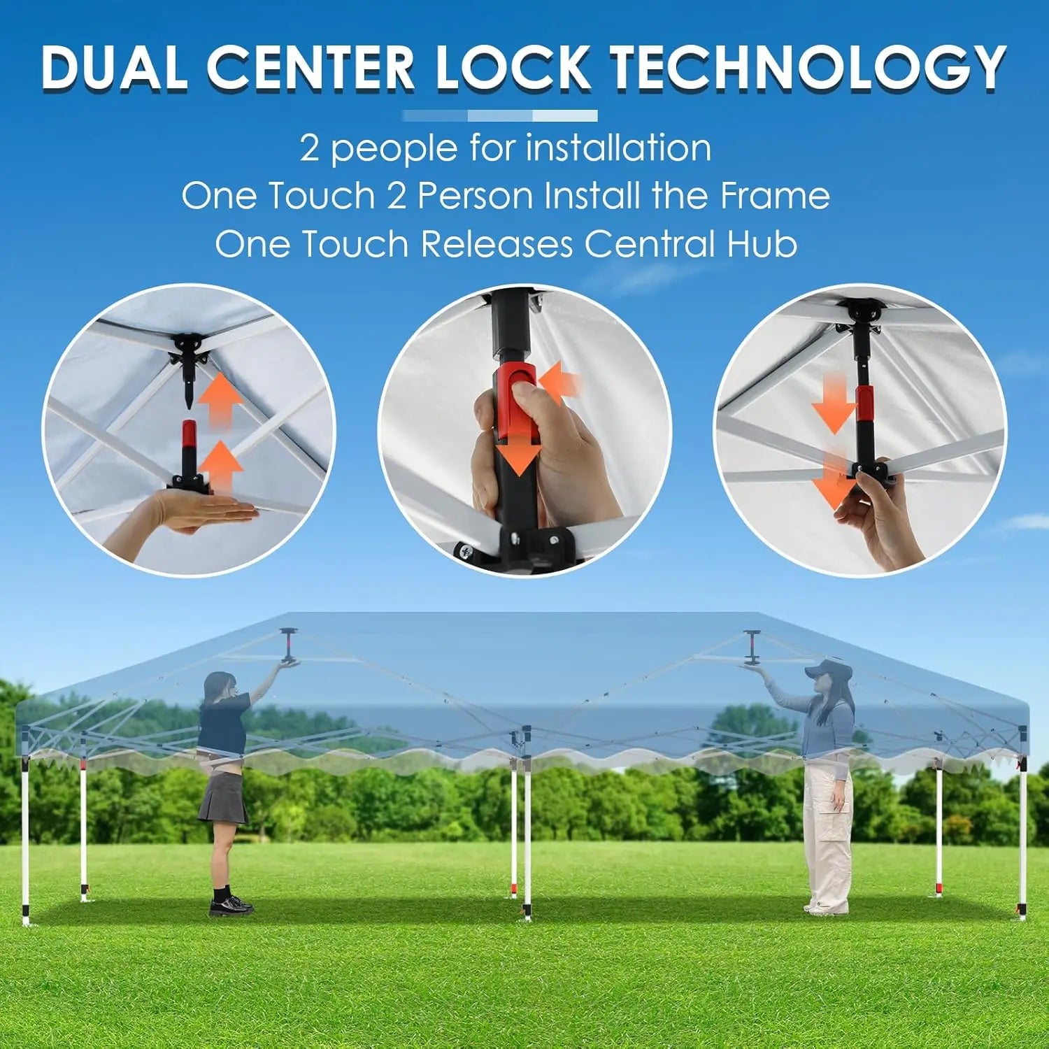 - Rychlá montáž pro bezstarostné venkovní akce: centrální push/pop-up design a centrální zámek urychlují montáž, což vám umožňuje soustředit se na příležitost.
