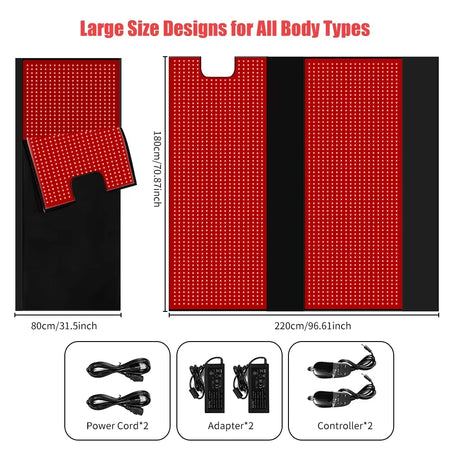- 1 x Velký červený světelný terapeutický podložka (660nm, 850nm)
