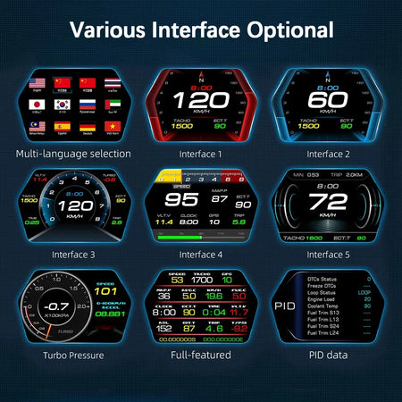OBD2 Head Up Display pro auto je kompaktní, vysoce technologický palubní společník, který přináší nezbytné údaje o jízdě do vašeho zorného pole. Navržen tak, aby promítal rychlost, otáčky motoru, údaje o palivu a další přímo na vaše čelní sklo, pomáhá vám udržet oči na silnici, zatímco stále sledujete důležité informace o vozidle. Vybaven vylepšenou stabilitou s dvojitým jádrem, tento HUD poskytuje plynulý, spolehlivý výkon a skutečně moderní zážitek z jízdy.