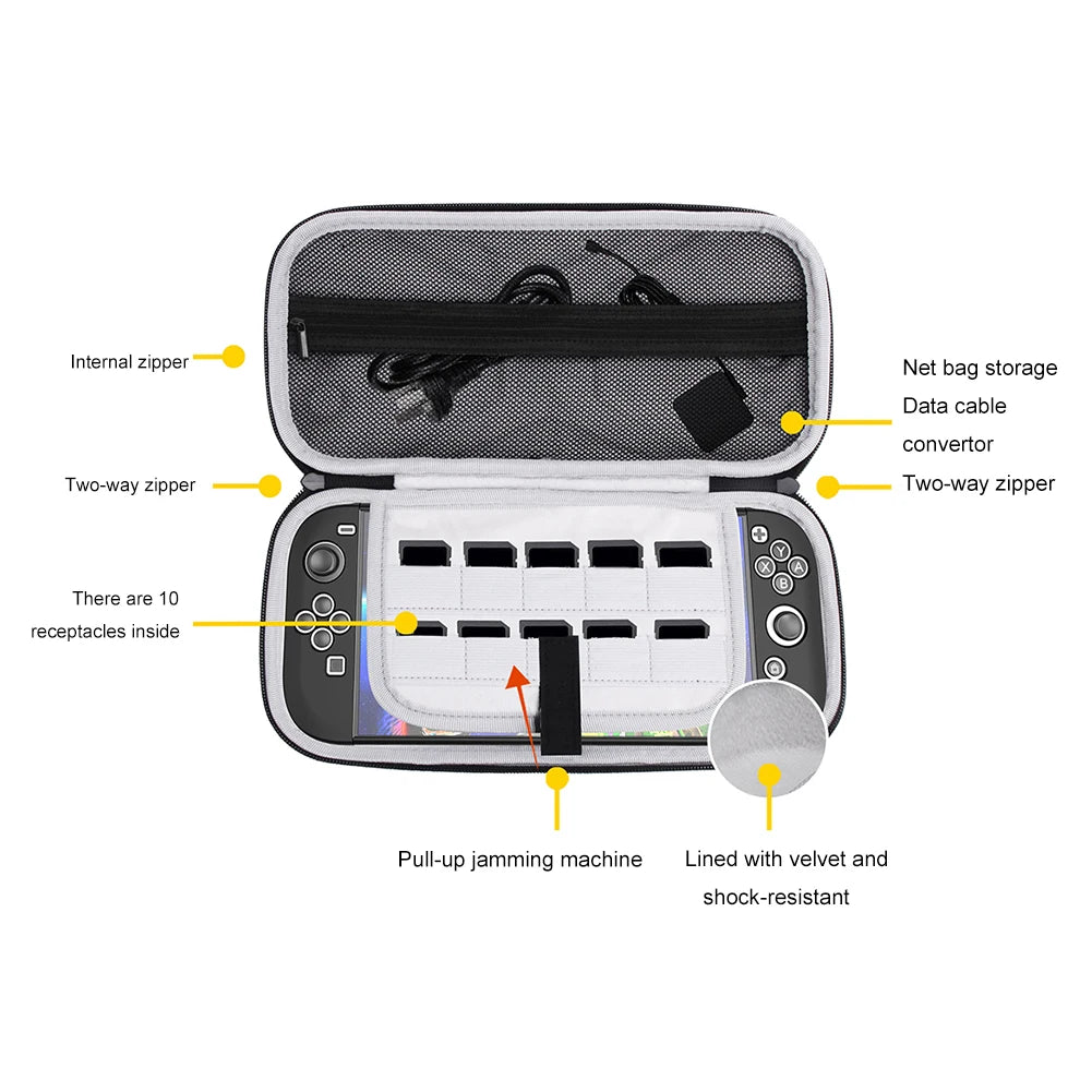 Vyrobeno z prémiového EVA materiálu, nabízí stylový texturovaný povrch a měkkou vnitřní podšívku, která chrání před každodenním opotřebením. Kromě uložení konzole má pouzdro několik kapes a elastických popruhů pro uložení herních karet, nabíjecích kabelů a sluchátek, což udržuje všechny vaše herní nezbytnosti organizované na jednom místě.