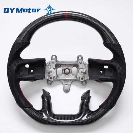Vylepšete svůj Dodge Ram 1500 z let 2019-2021 tímto volantem z uhlíkových vláken, který má perforovanou černou kůži a odvážné červené prošívání. Vyrobený z uhlíkových vláken s černým perforovaným koženým úchopem, dodává sportovní vzhled inspirovaný závody a zlepšuje zpětnou vazbu řízení a úchop pro každodenní jízdu nebo dynamické sezení. Kolo s kulatým vrcholem a plochým dnem poskytuje moderní, na výkon zaměřený pocit a usnadňuje návrat do středu během agresivních manévrů. Výřezy pro páky umožňují použití aftermarketových pák (páky nejsou součástí balení), což vám umožňuje přizpůsobit nastavení vašemu stylu jízdy.