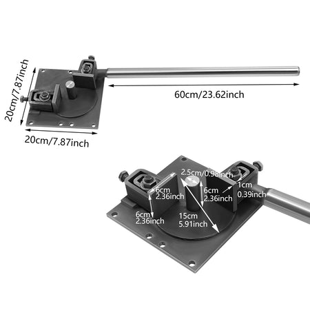 Ruční ohýbačka železa 1-14mm 180 stupňů je robustní, ruční ohýbací nástroj navržený pro spolehlivý výkon na trubkách a hadicích. Podporuje materiály s průměrem od 1 do 14 mm a umožňuje dosáhnout ohybů až do 180° s hladkou, kontrolovanou pákou. Vyrobeno z prémiové oceli a nerezové oceli pomocí laserového řezání a svařování, tento nástroj poskytuje trvalou sílu pro těžké projekty. Ergonomická rukojeť o délce 60 cm minimalizuje únavu a poskytuje pohodlnou, přesnou kontrolu, zatímco pevná základní deska, zarážka, středový sloupek a disk zajišťují stabilitu pro přesné ohyby. Předvrtané otvory na základně umožňují montáž na pracovní stůl nebo rám, a instalaci lze provést pomocí šroubů nebo rychloupínacích svorek (nejsou součástí). Původ: pevninská Čína.