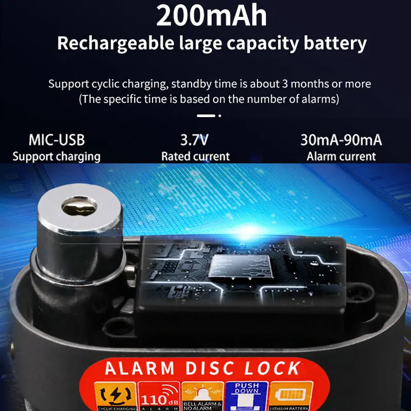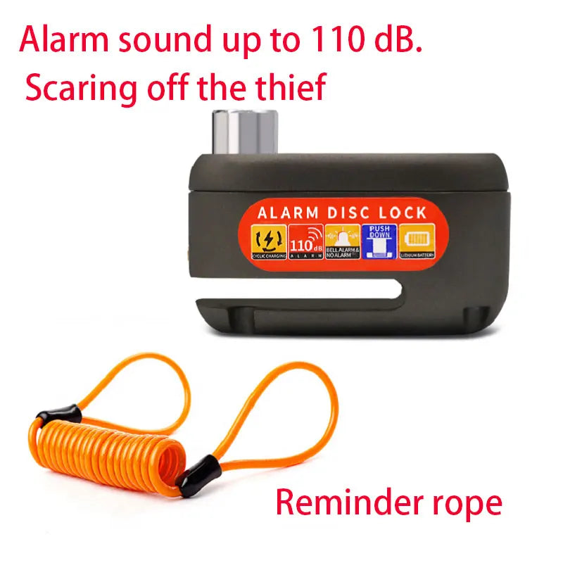 Zámek na kolo VChoice s kotoučovou brzdou a alarmem 110dB, vodotěsná nerezová ocel
