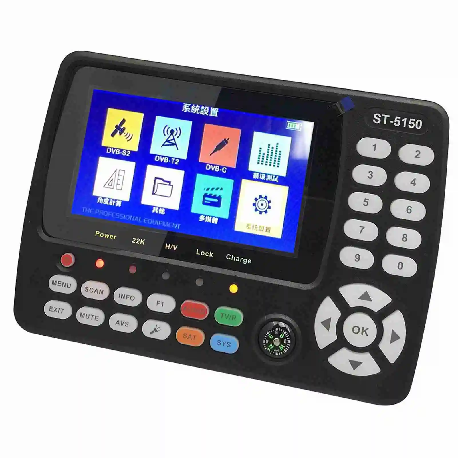 ST-5150 DVB-S2/T2/C COMBO HD satelitní TV signálový hledáč digitální přenosné signálové měřidlo satelitní hledáč H.265 HEVC MPEG-4 4.3 palcový TFT LCD US zástrčka