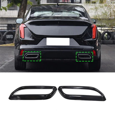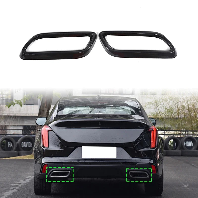 - 2 kusy lesklého černého nerezového rámového samolepky pro Cadillac CT4 CT5 (2020-2023) a CT6 (2023+)