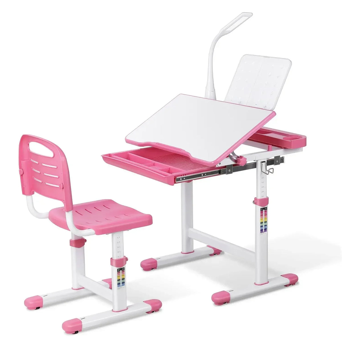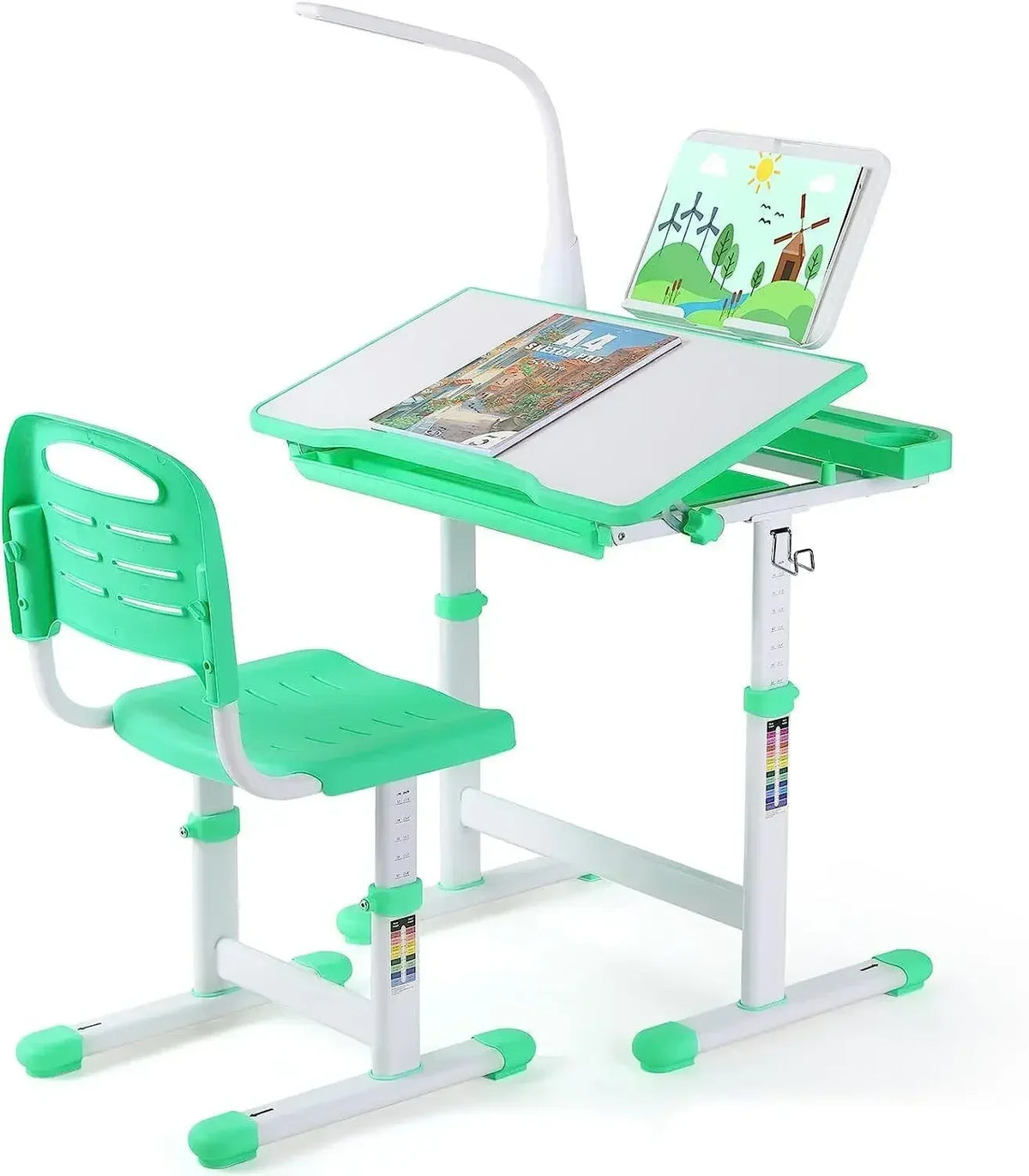 Objevte výškově nastavitelný dětský stůl s šuplíkem a LED lampou—univerzální, na růst přátelská studijní stanice, která činí domácí úkoly, čtení a kreativní kreslení pohodlné a organizované. S ergonomickým designem s nastavitelnou výškou, integrovanou LED lampou se třemi režimy, užitečným stojanem na knihy a praktickým úložným prostorem, tento stůl roste s vaším dítětem od raného věku až po dospívání. Vyrobeno s robustním ocelovým rámem a odolnou MDF pracovní plochou, zůstává spolehlivé, jak se studijní rutiny vyvíjejí.