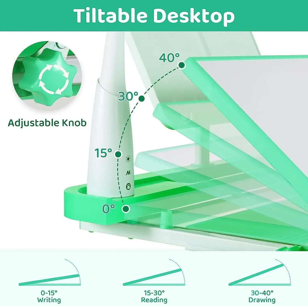 - Univerzální pracovní prostor: nakloňte desku stolu pro čtení, psaní nebo kreslení, abyste snížili napětí v krku a chránili oči během dlouhých sezení.