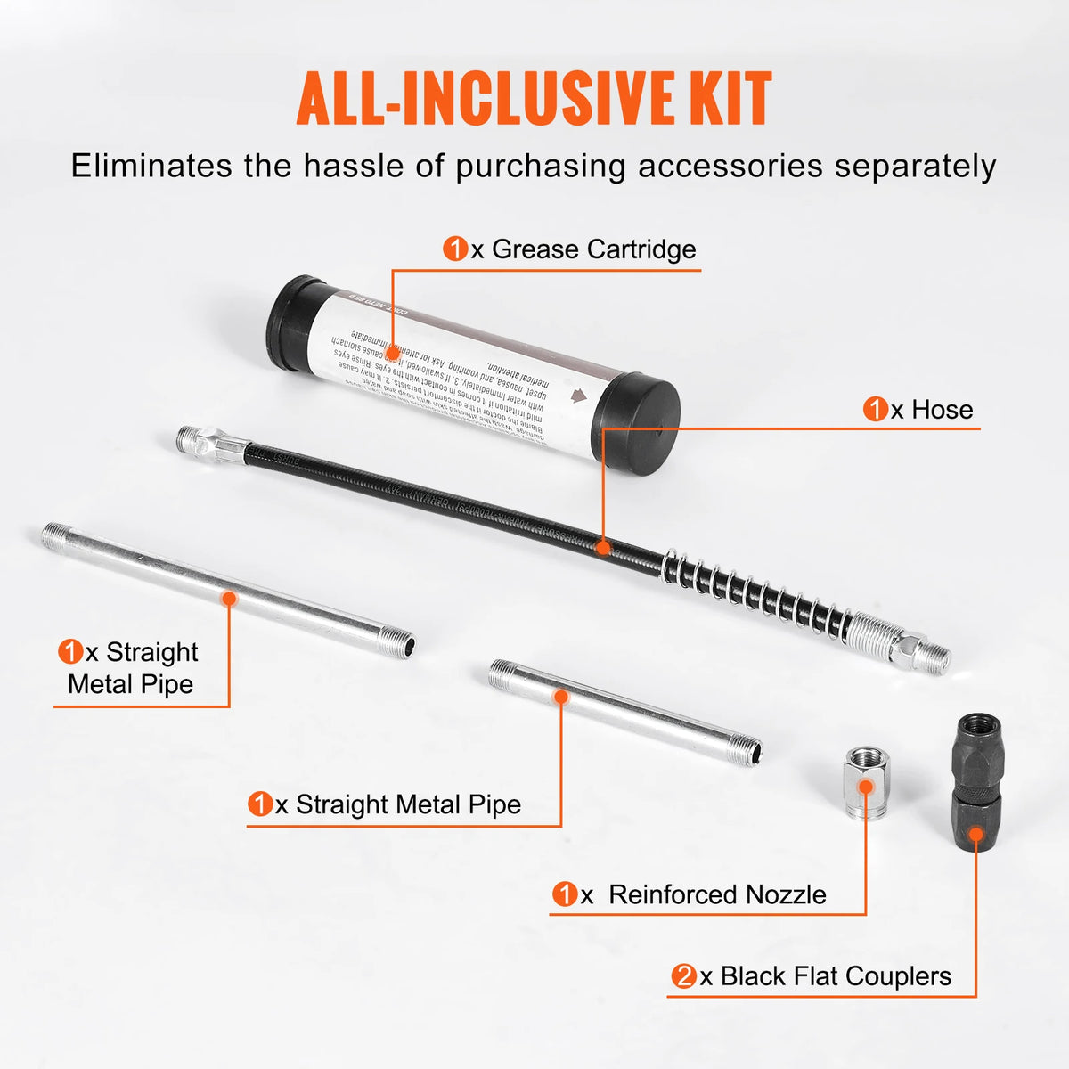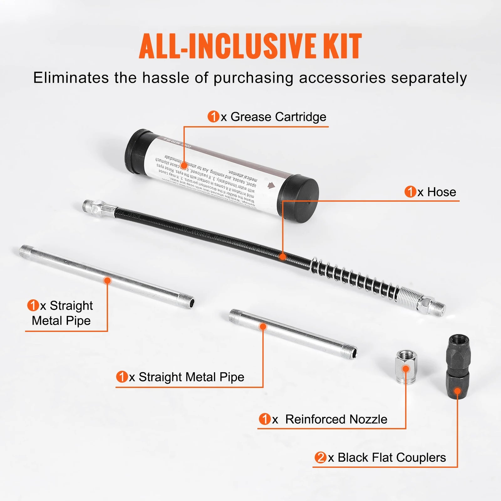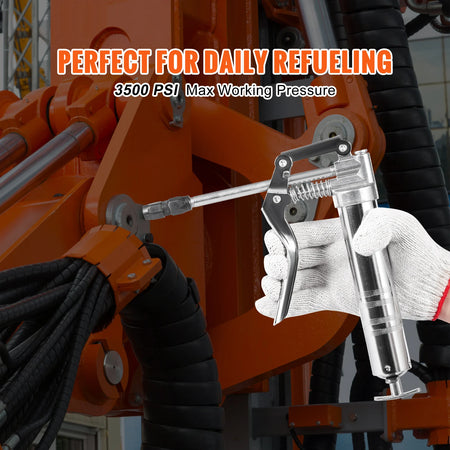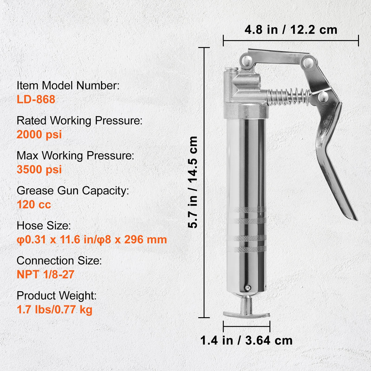 Seznamte se s 3500 PSI mazací pistolí s rukojetí a flexibilní hadicí — robustním, vysoce výkonným nástrojem pro mazání, navrženým pro zvládání těžkých údržbářských prací ve výrobních závodech, na farmách, staveništích, rybářských operacích a v dolech. Tato mazací pistole s rukojetí dodává maximální pracovní tlak až 3500 PSI, což zajišťuje hladké, bezproblémové mazání pro vozidla, traktory, hnací hřídele, kulové klouby a další kritické komponenty. Vyrobena z uhlíkové oceli s hliníkovou rukojetí, je navržena tak, aby odolávala těžkému používání, odolávala korozi a zůstávala spolehlivá den za dnem.