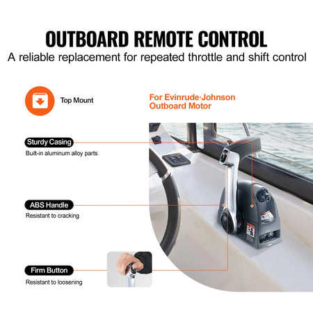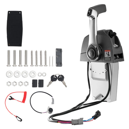 Ovládací box pro vnější motor s horním montážním umístěním je kompatibilní s vnějšími motory Evinrude Johnson a je vyroben z vysoce kvalitních materiálů pro dlouhotrvající výkon. Jeho velká ovládací páka zahrnuje praktické tlačítko pro uvolnění neutrální polohy pro hladké řazení, zatímco knoflík pro nastavení tření na přední straně vám umožňuje přizpůsobit citlivost škrticí klapky pro personalizovaný zážitek z jízdy. Integrovaný trim přepínač na ovládací páce usnadňuje nastavení náklonu motoru, což pomáhá při snadnějším přistání, manipulaci s nákladem a zabraňuje prodlouženému ponoření motoru. Funkce nastavení poměru vzduchu a paliva při nízkých teplotách podporuje spolehlivé starty motoru a konzistentní výkon v chladném počasí, takže vaše loď zůstává spolehlivá po celou sezónu.
