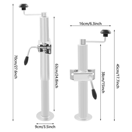 Udržujte svůj přívěs bezpečně podepřený s pomocí sady držáků na zvedák přívěsu — odolné 4-balení nastavitelného výškového podpěry navržené tak, aby vyhovovalo široké škále přívěsů a nastavení vozidel. Každý držák je vyroben z oceli s elektrogalvanizovaným povrchem, který poskytuje odolnost proti nárazům a ochranu proti opotřebení pro dlouhotrvající výkon. S velkou nosností 100 kg (220 lbs) na kus, tato sada poskytuje spolehlivou podporu při údržbě, nakládání a vykládání. Výška držáku je nastavitelná od 38 do 63 cm (15–24,8 in), bez rukojeti a základny, takže se můžete rychle přizpůsobit různým výškám tažného zařízení a podmínkám terénu. Elegantní stříbrná barva a moderní design se hodí k většině přívěsů a zajišťují robustní a spolehlivý provoz. Tato čtyřdílná sada usnadňuje výměnu a zajišťuje, že máte rezervní podpěry po ruce pro bezpečnou a efektivní péči o přívěs. Všechna elektronická a mechanická zařízení, přístroje a stroje prodávané společností InterCyprus do zemí EU jsou certifikována CE a mají dvouletou záruku. Na intercyprus.com od roku 2002 — důvěryhodné pro kvalitu a spolehlivost.