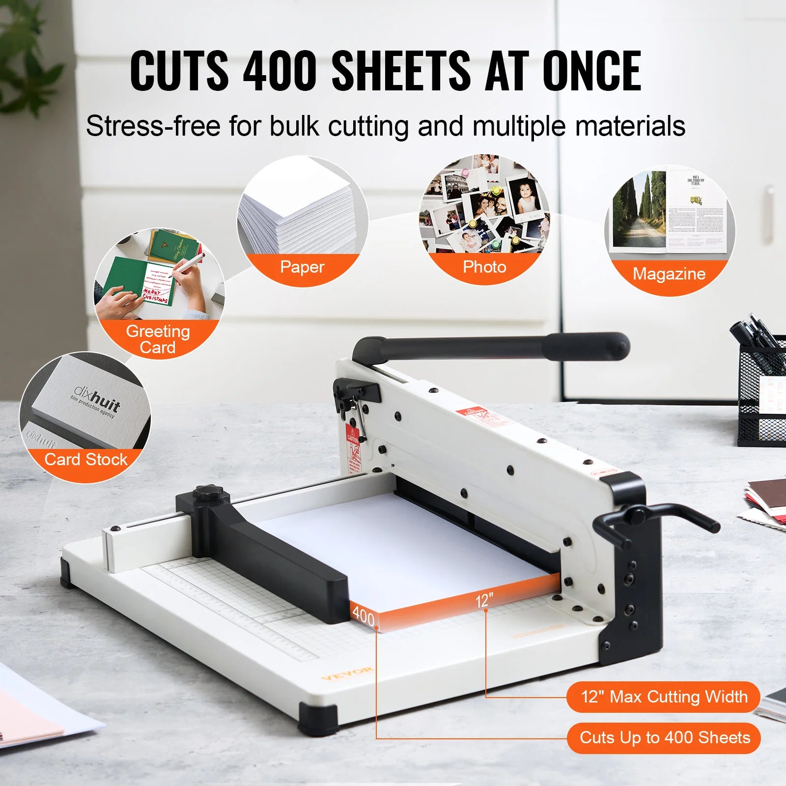 - 1 x VEVOR Řezací stroj na papír (12–17 palců, kapacita 400 listů)