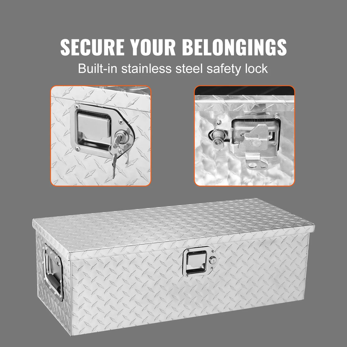 Odolná hliníková toolbox na korbu nákladního vozu s bočním zámkem je navržena tak, aby vydržela náročné úkoly a zároveň udržela vaše vybavení organizované a snadno přístupné. Vyrobená z lehké hliníkové slitiny s robustním diamantovým vzorem a odolným dvouvrstvým povlakem, tento toolbox odolává rzi, korozi a oděru po mnoho let spolehlivého používání. Přesahující dveře těsně uzavírají, aby chránily obsah před deštěm, sněhem a prachem, což zajišťuje, že vaše nástroje zůstanou suché a připravené. Mechanismus zámku z nerezové oceli se dvěma klíči poskytuje solidní ochranu proti krádeži, zatímco široké boční rukojeti a vestavěné řetězy na víku usnadňují přenášení a otevírání, i když máte rukavice. Víko se otevírá až do 110° pro plný přístup, takže můžete dosáhnout na každý kout, aniž byste museli manipulovat s předměty. S velkorysou kapacitou 64 L a nosností 66 lbs (30 kg) se hodí do nákladních vozů, přívěsů, obytných vozů a domácího úložiště. Všechna elektronická a mechanická zařízení, přístroje a stroje prodávané společností InterCyprus do zemí EU jsou certifikována CE a mají dvouletou záruku. Poskytujeme kvalitní a důvěryhodné služby od roku 2002 na intercyprus.com.