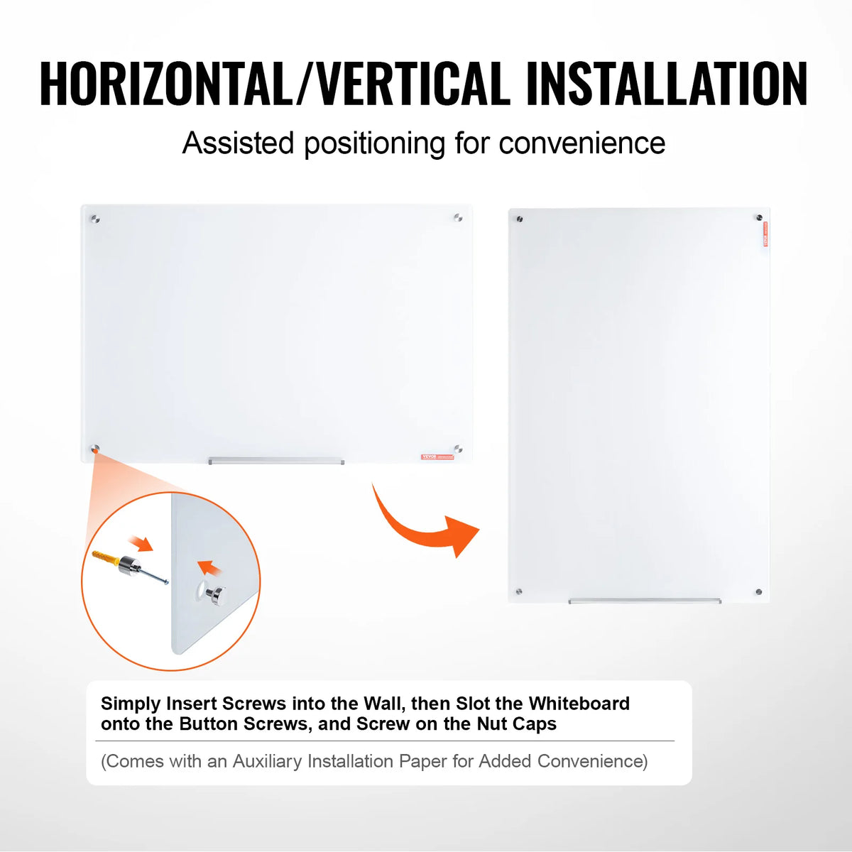 Představujeme VEVOR Magnetickou Skleněnou Bílou Tabuli na Zeď Bez Rámu Velkou — stylový, odolný psací povrch navržený pro spolupracující prostory. Tato bezrámová, jednostranná tabule má magnetický temperovaný skleněný povrch, který odolává skvrnám a "duchům", ideální pro brainstorming, plánování a každodenní poznámky. Design montáže na zeď udržuje váš prostor bez nepořádku, zatímco velký povrch poskytuje dostatek místa pro nápady. Vyrobeno z temperovaného skla s pozinkovaným pozadím, je navrženo tak, aby odolalo častému používání a snadno se čistí mikrovláknovým hadříkem. Vyrobeno společností VEVOR a pocházející z pevninské Číny, tato velká tabule kombinuje profesionální odolnost s elegantním, moderním vzhledem.