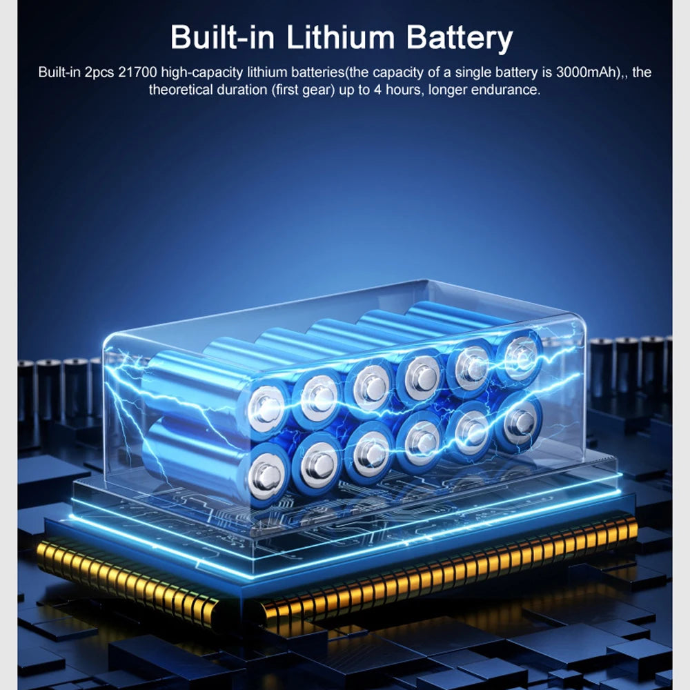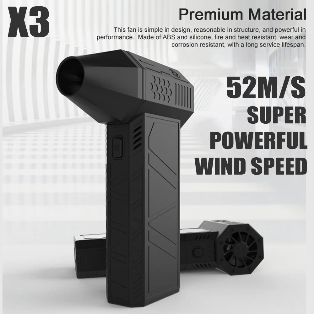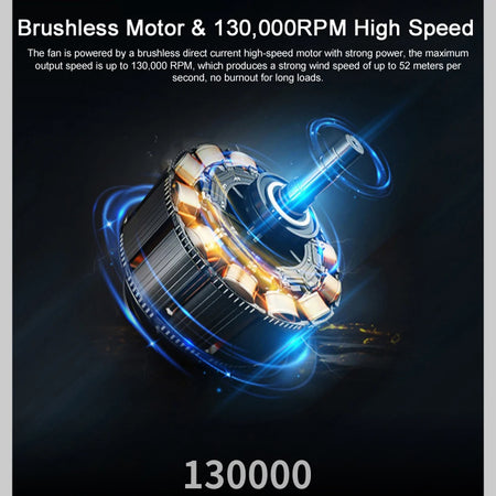 Oplev kraften i hånden med den 130000RPM Turbofan Højtydende Jet Fan Børsteløs Støvsuger. Dette trådløse håndholdte værktøj kombinerer et kompakt design med industriel styrke, hvilket gør det nemt at håndtere støv, snavs og skidt i trange rum - uanset om du arbejder med bilinteriører, tastaturer eller værkstedsstøv. En højhastigheds børsteløs DC-motor leverer op til 130.000 RPM og vindhastigheder på op til 52 meter pr. sekund, med tre gear og 16 justerbare hastighedsniveauer for at matche enhver opgave uden at overbelaste motoren.