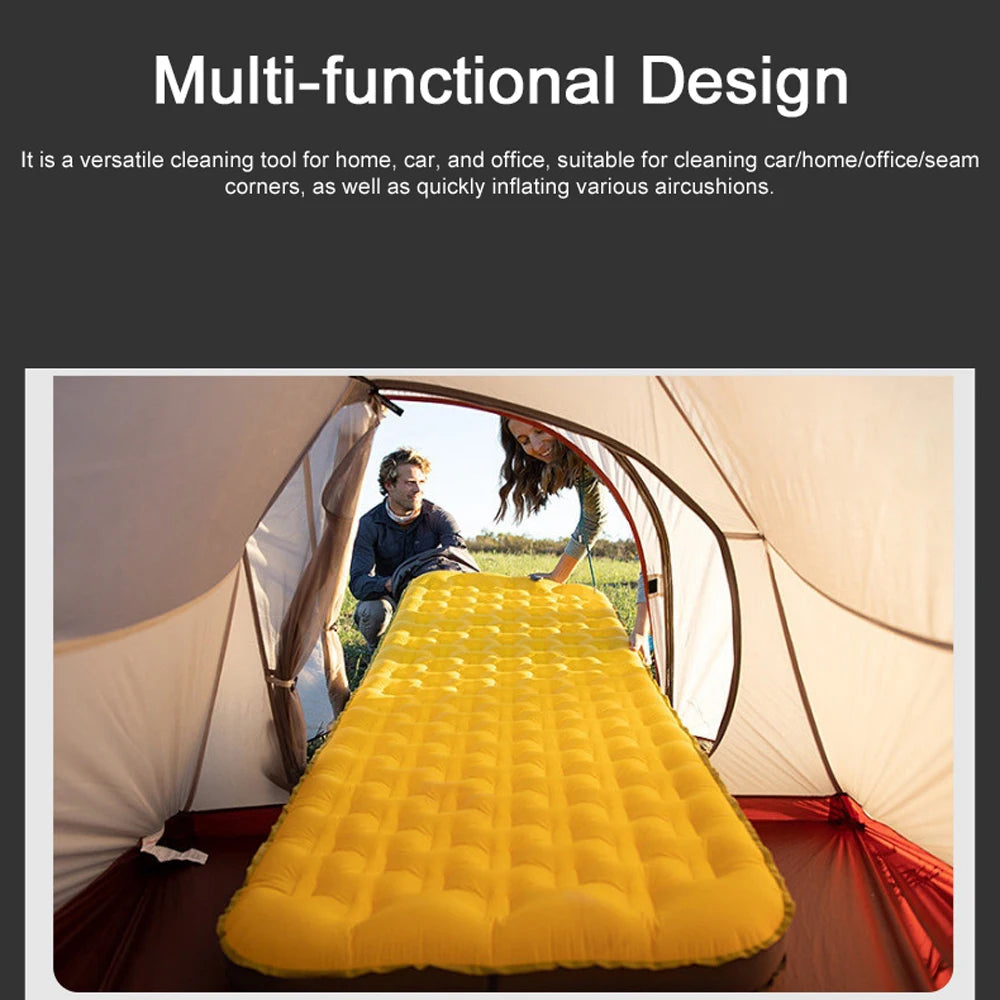 - Alsidige opgaver: brug på skriveborde, arbejdsbænke og trange hjørner; blæs hurtigt små luftpuder op efter behov.