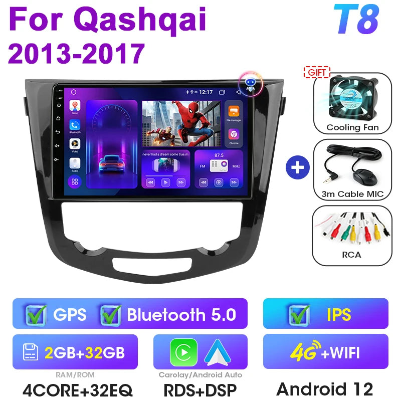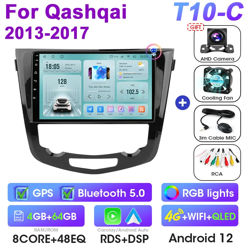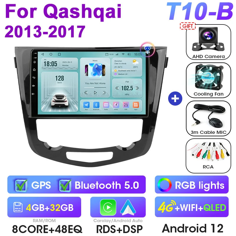 Opgrader din Nissan Qashqai J11, X-Trail T32 eller Rogue (2013-2021) med en kraftfuld Android 12 2-Din bilradio, der bringer moderne smart teknologi til cockpittet. Denne 10-tommers touchskærms multimedieenhed erstatter fabriksradioen og leverer et rent, integreret look i instrumentbrættet samtidig med, at den tilbyder en responsiv Android-oplevelse på vejen. Indbygget GPS-navigation, CarPlay, Android Auto og bred mediestøtte forvandler hver køretur til en engagerende, forbundet rejse.