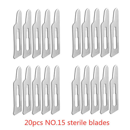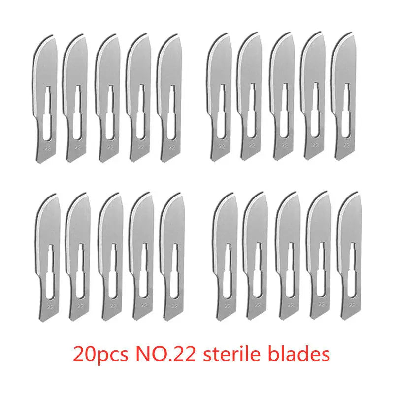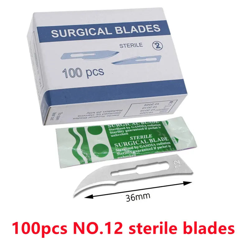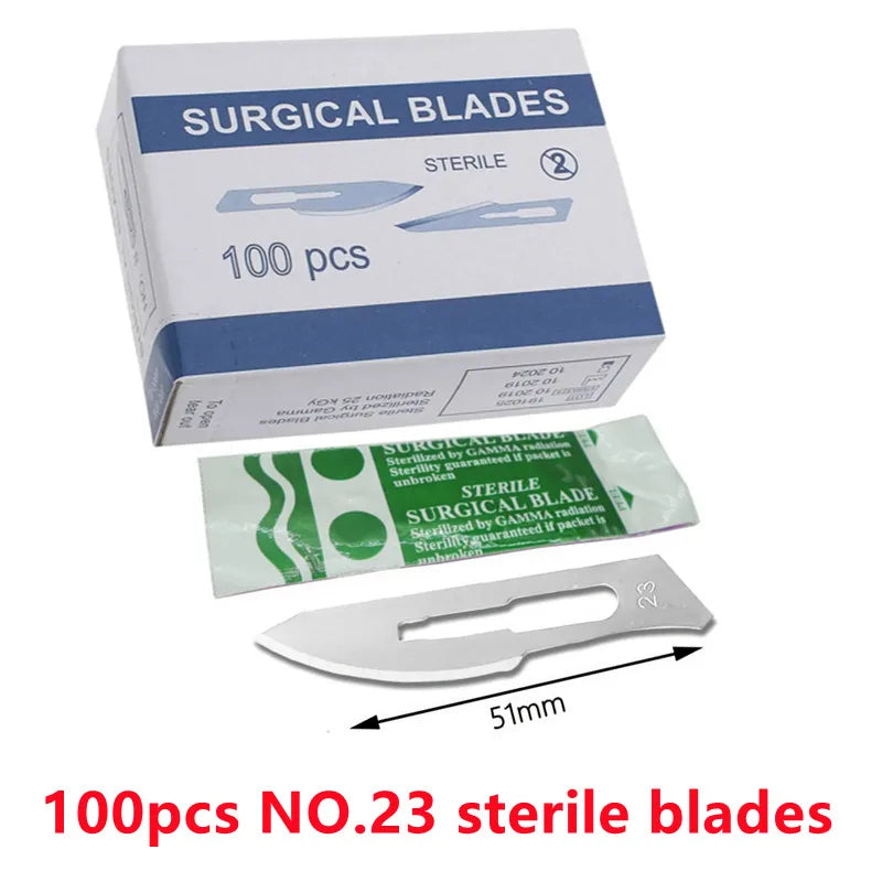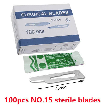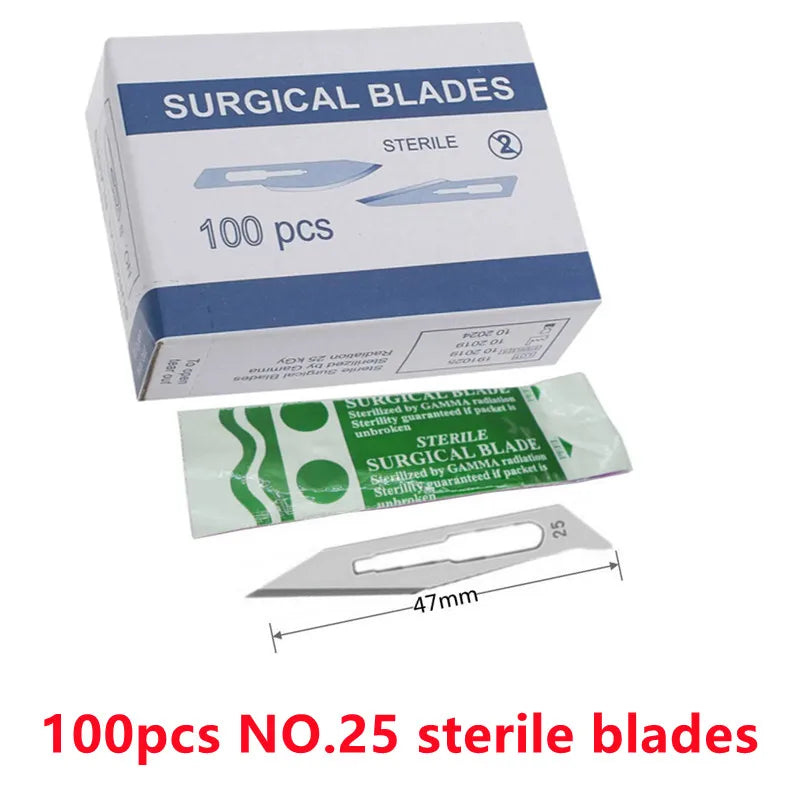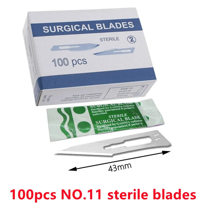 20-100stk Sterile Kulstofstål Kirurgiske Blade Skalpel Kniv — Præcise sterile blade designet til DIY skæring, telefonreparation, udskæring, dyrepleje og fine vedligeholdelsesopgaver. Kompakt, skarp og konstrueret til kontrollerede snit.