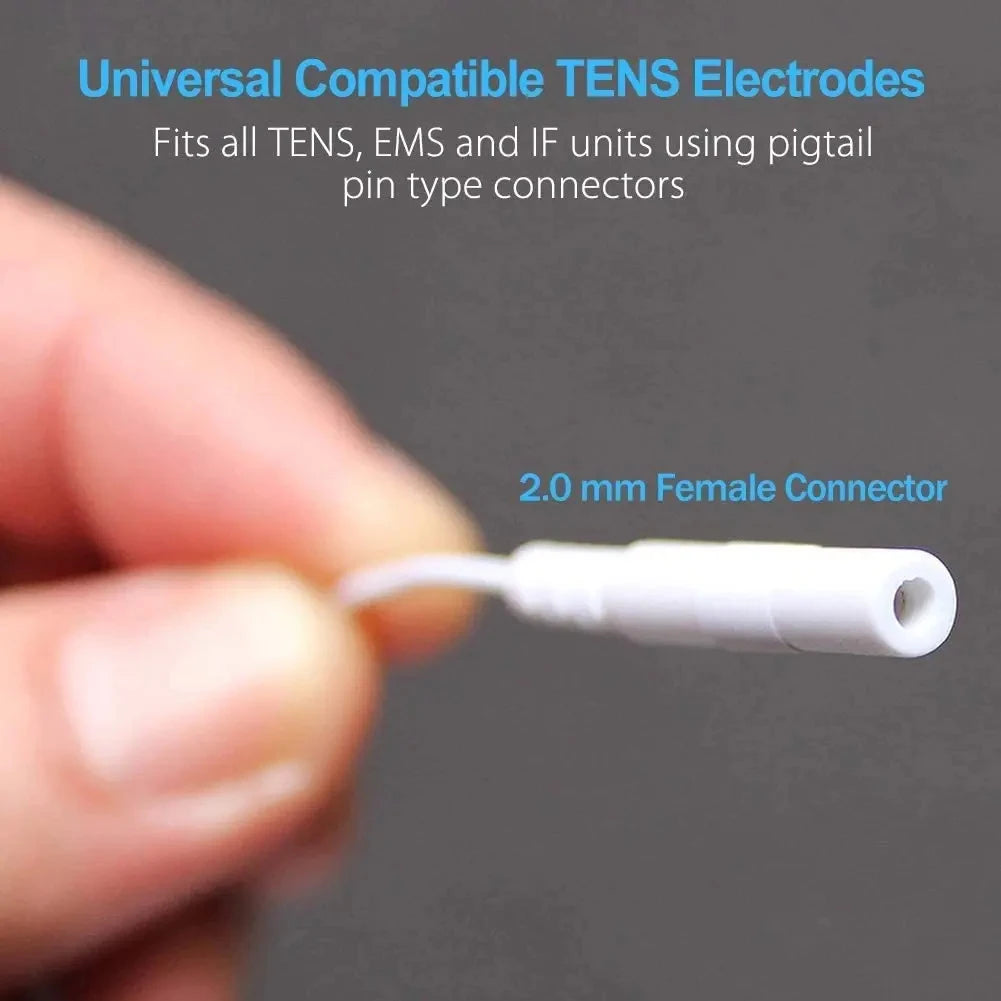 Disse elektrodeplader passer til alle 2,0 mm kabler og inkluderer 2 mm stikledninger, hvilket gør dem til en praktisk erstatningsmulighed for en bred vifte af enheder. For bedste resultat, rengør huden med sæbe før brug; efter sessioner, læg pladerne tilbage i deres originale emballagepose og opbevar dem på et skyggefuldt sted. Hvis pladerne bliver tørre, kan et par dråber vand hjælpe med at genoprette klæbeevnen og forlænge levetiden.