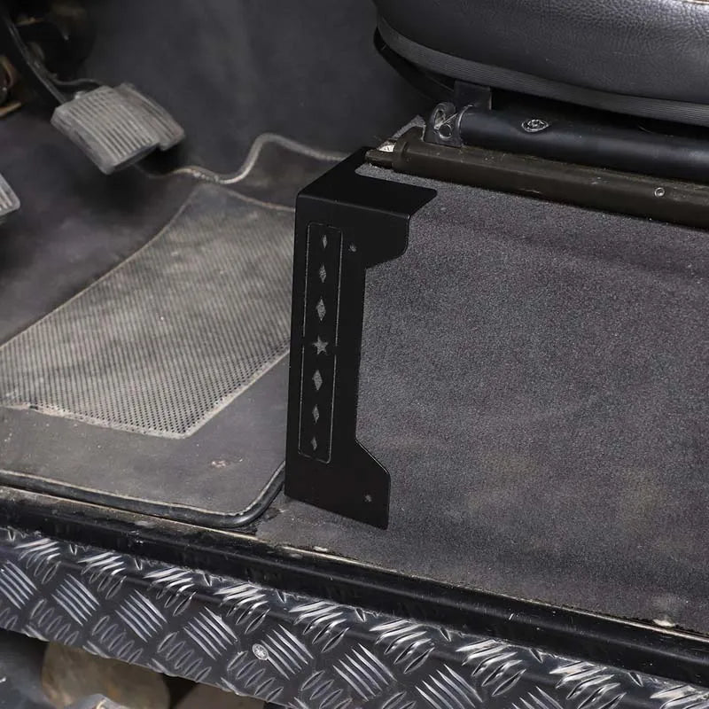 Forbedr og beskyt interiøret i din Land Rover Defender med Aluminum Front Rear Seat Base Corner Protectors Defender. Fremstillet af holdbar aluminiumslegering i en elegant sort finish, beskytter disse hjørnebeskyttere front- og bagsædebasis mod ridser, slid og daglige stød, samtidig med at kabinettets stil løftes.