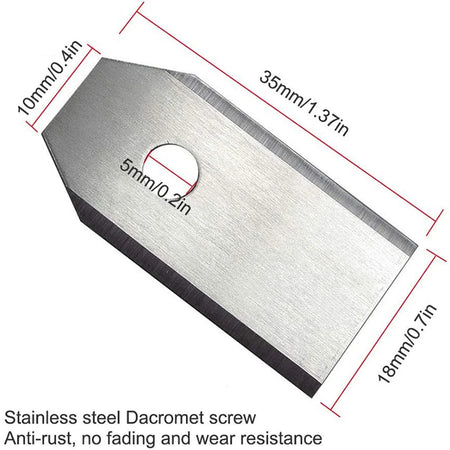 30Pcs Rustfrit Plæneklipperblade 0.7mm til Husqvarna Automower er fremstillet af høj kvalitet rustfrit stål og afsluttet med en titaniumcarbidbelægning for at levere en knivskarp kant, der nemt klarer selv hårde græsplæner. Disse erstatningsblade er bygget til holdbarhed, modstår slid og korrosion for langvarig ydeevne i daglige klippeopgaver. Med en præcis 0.7 mm skærekant tilbyder de lav vedligeholdelse og forlænget levetid, hvilket reducerer behovet for hyppig slibning. De installeres hurtigt på kompatible Gardena, Husqvarna Automower og Yardforce modeller, så du kan skifte til friske blade på få minutter og komme tilbage til en perfekt klippet græsplæne hurtigere. Designet til bred kompatibilitet, fungerer de med en bred vifte af plæneklippere, herunder Husqvarna Automower modeller som 105, 220AC, 230ACX, 260ACX, 265ACX, 305, 308, 310, 315, 320, 330X, 420, 430, 440, 450XSolarhybrid, og G1; Gardena modeller som R38Li, R40Li, R45L, R5Ou, R7OU, R75L, R8OL, R10OLI, R130L, R16OLI, R165, R180, SILENO, SlILENO+; og Yardforce SC600, SC 600 Eco, SC 900. Vælg enten 18 stk eller 30 stk for at matche dine erstatningsbehov og holde din græsplæne i perfekt stand.