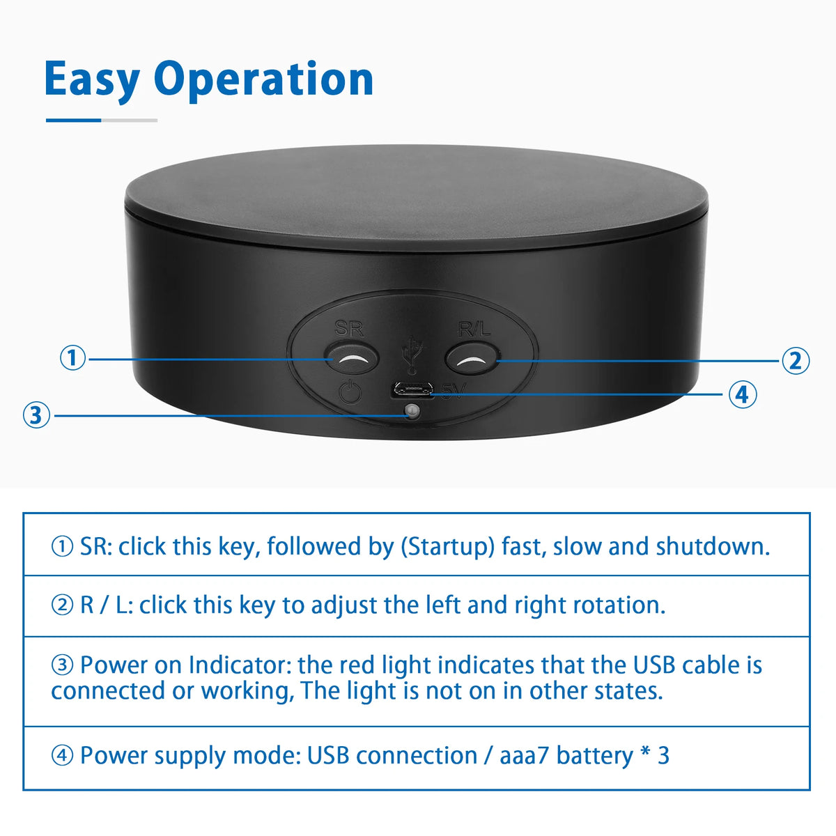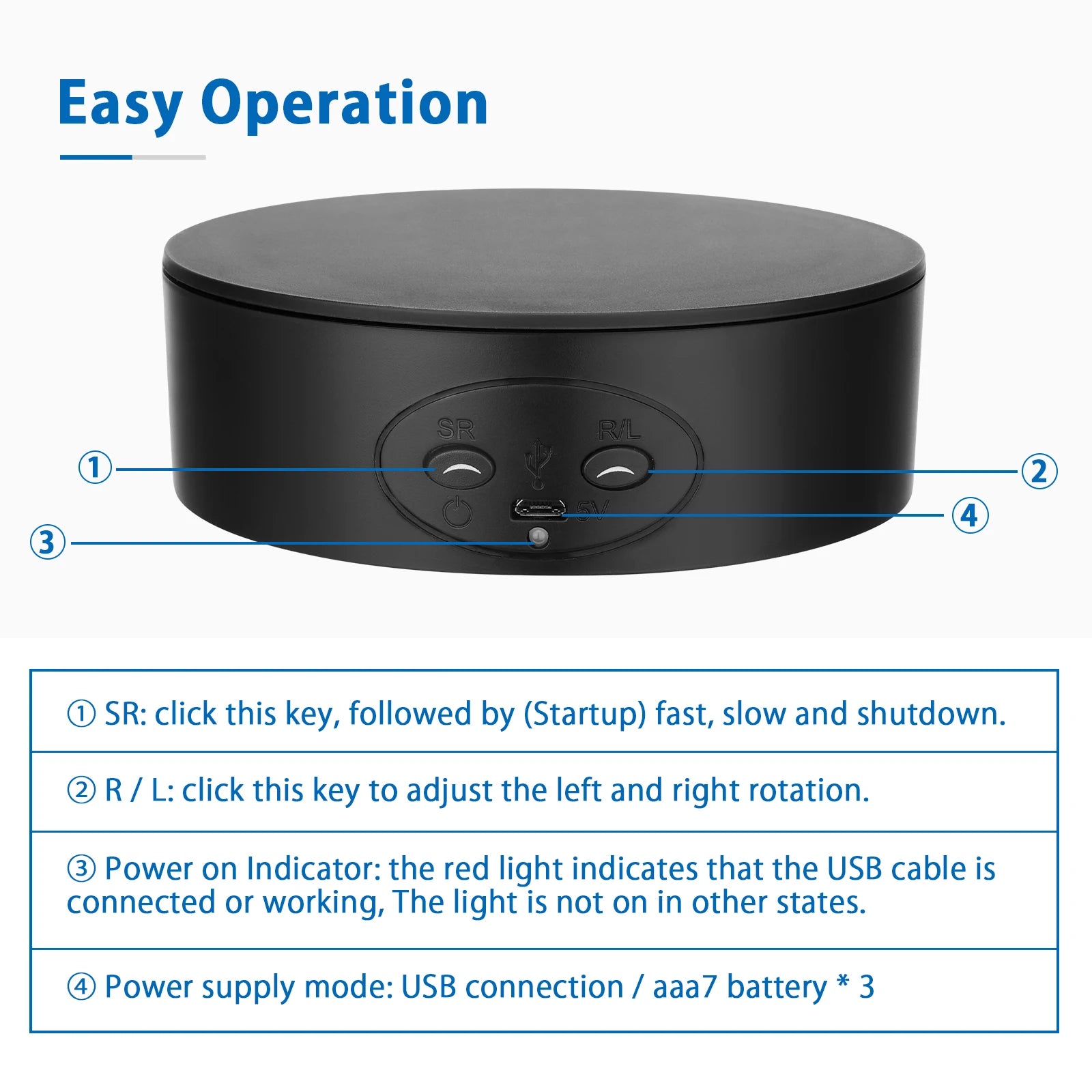 - Fantastisk til smykke fotografering og produktudstillinger: drej genstande glat for at vise hver vinkel og detalje.