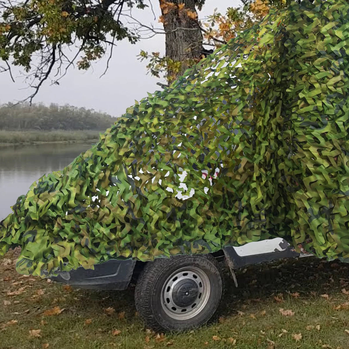 Forbedr din udendørs skjul med 6x4m Grøn Camouflagenet, en pålidelig skjuløsning fremstillet af holdbart Oxford-stof og forstærket med en stærk nylonrebskonstruktion. Med målene 600x400x0,5 cm (236,22x157,48x0,19 tommer) og en vægt på ca. 1,85 kg giver dette store net rigelig dækning til køretøjer, telte, udstyr eller en campingopsætning. Den levende grønne farve blander sig sømløst med naturlige omgivelser og tilbyder forbedret skjul sammenlignet med hvide eller gule net. Bedst af alt kan du klippe det til din præcise størrelse for alsidig, mobil skjul i forskellige scenarier.