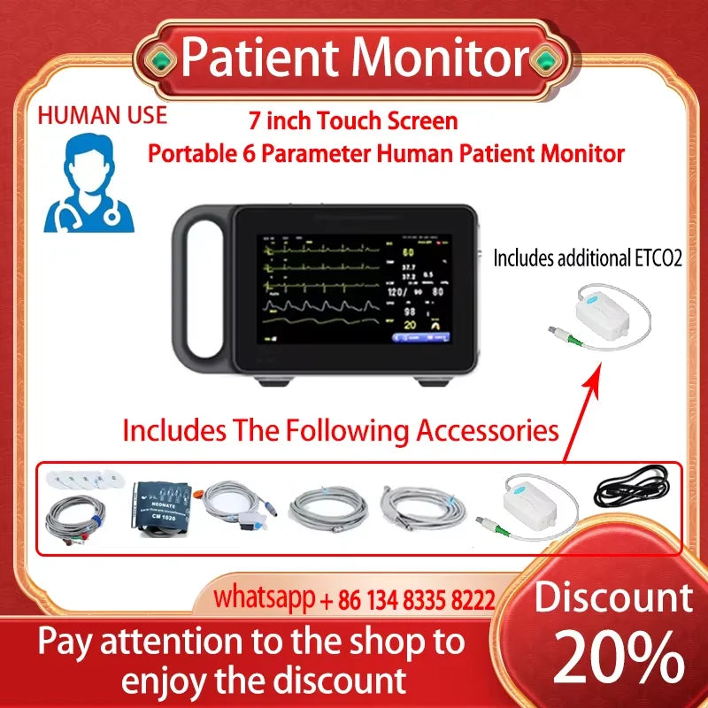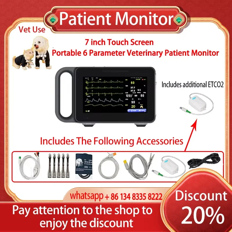 Mød 7 Inch Touchscreen 6 Parameter Vital Signs Monitor Vet — en kompakt, multi-parameter patientmonitor designet til veterinærklinikker, mobil pleje og ambulance-miljøer. Den overvåger ECG, SpO₂, NIBP, respirationsfrekvens, temperatur og CO₂ med en 7-tommers touchscreen for hurtig, intuitiv betjening. Realtidsalarmer (visuelle og hørbare) advarer plejepersonalet øjeblikkeligt, når parametre afviger fra sikre områder, hvilket hjælper dig med at reagere hurtigere og sikrere for hvert dyr. På trods af sine omfattende funktioner forbliver enheden bærbar med en let konstruktion og et langtidsholdbart genopladeligt batteri (19,43Wh) og Type-C opladning. WiFi-forbindelse muliggør problemfri integration med hospitalsnetværk og centraliserede overvågningssystemer. Flersproget support inkluderer engelsk og kinesisk for global anvendelighed. Alt elektronisk og mekanisk udstyr, apparater og maskiner solgt af InterCyprus til EU-lande er CE-certificeret og har to års garanti. Vi har leveret kvalitet og pålidelig service siden 2002 på intercyprus.com.