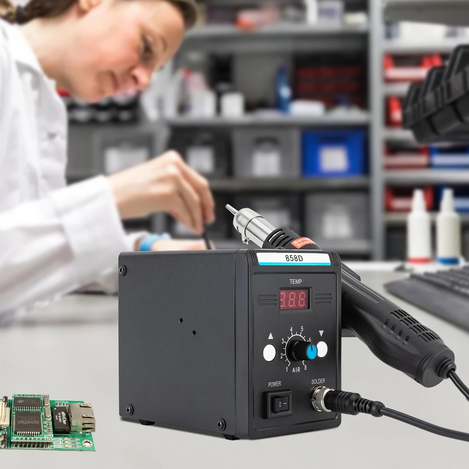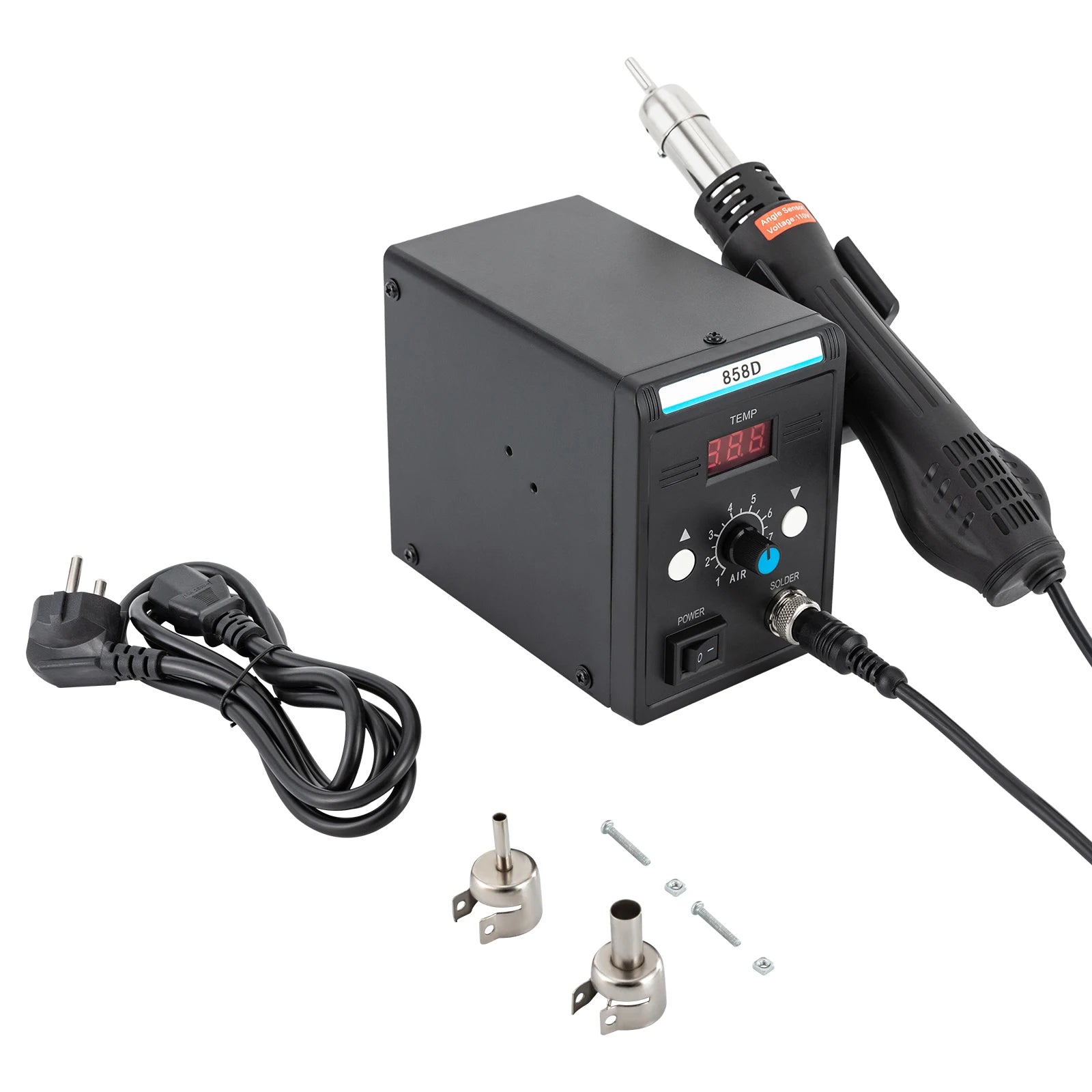 858D 700W varm luft rework station med pistol 3 dyser 8 gear