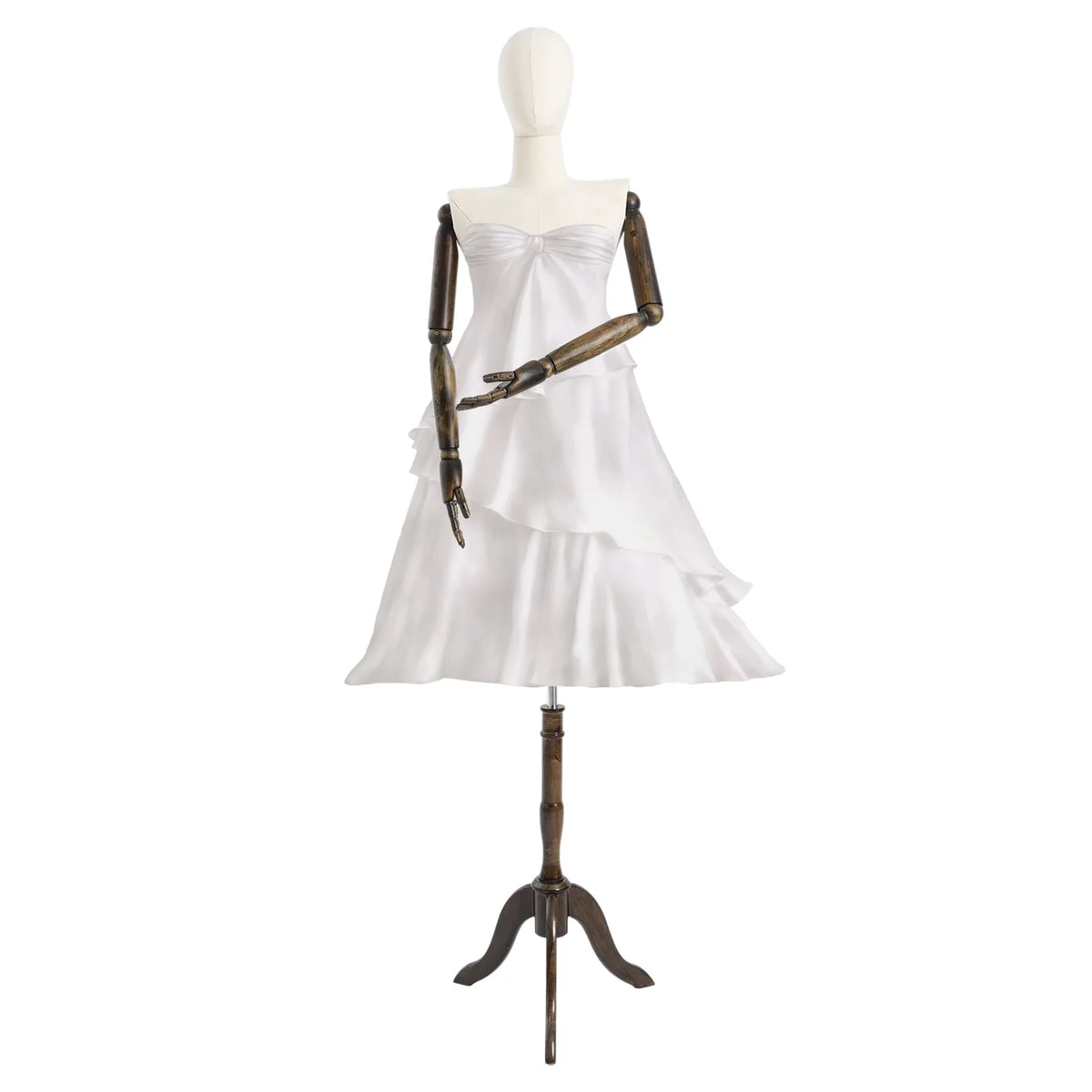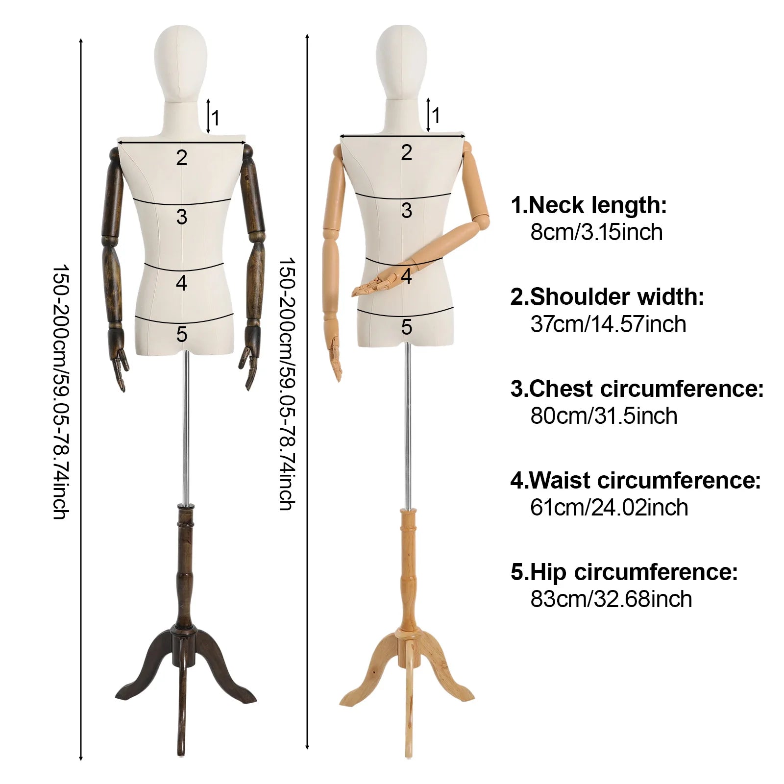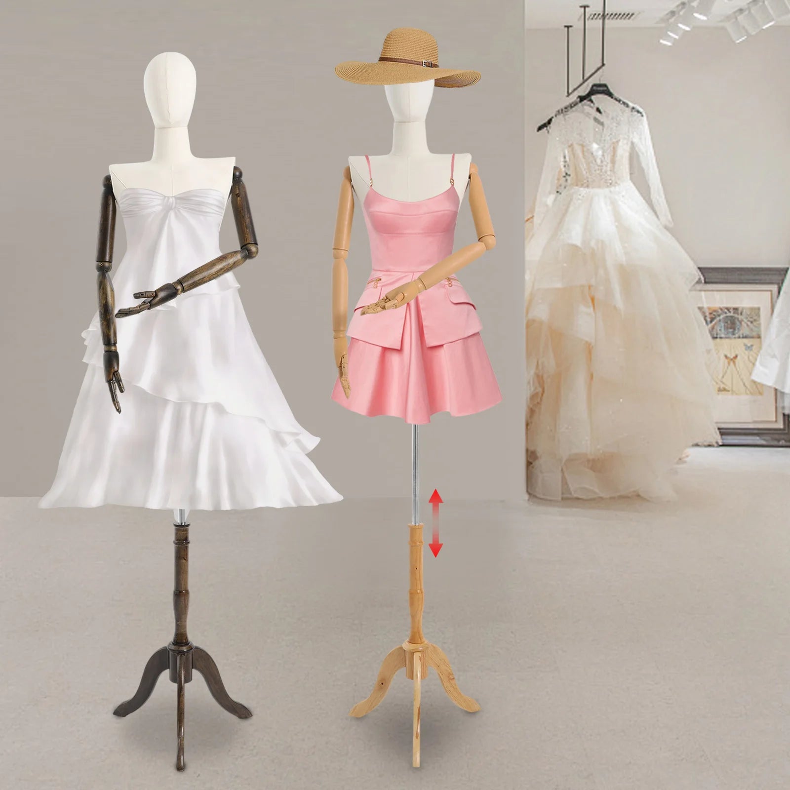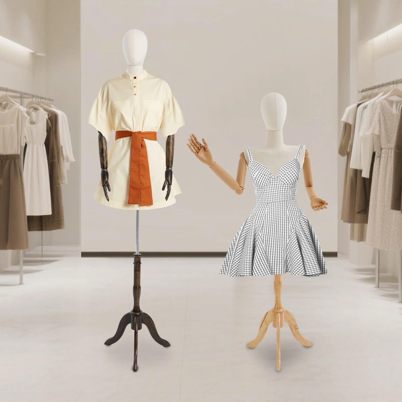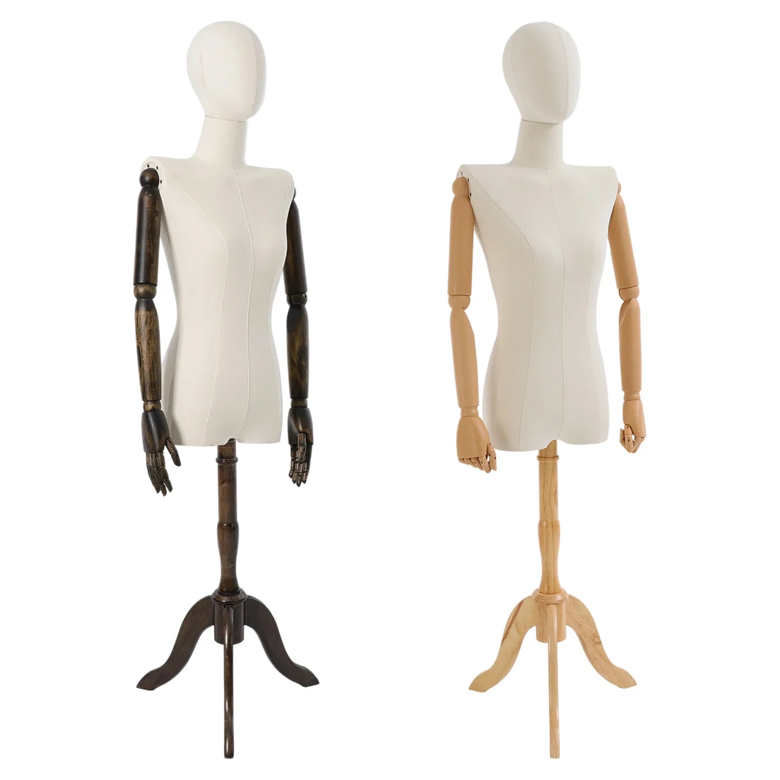 Bygget til holdbarhed og langvarig brug kombinerer mannekinen plastik, linnedstof, massivt træ og metal, alle færdiggjort med en sprøjtelakproces for forbedret slag- og ridsebestandighed. Det bløde linnedstofbetræk beskytter sarte stoffer og smykker mod at hænge fast, hvilket sikrer, at dine udstillinger forbliver uberørte fra vindue til showroomgulv. Hovedet er designet til at ligne en naturlig kvindelig form med nøjagtige kurver fra skuldre til talje og hofter for en ægte bæreoplevelse.