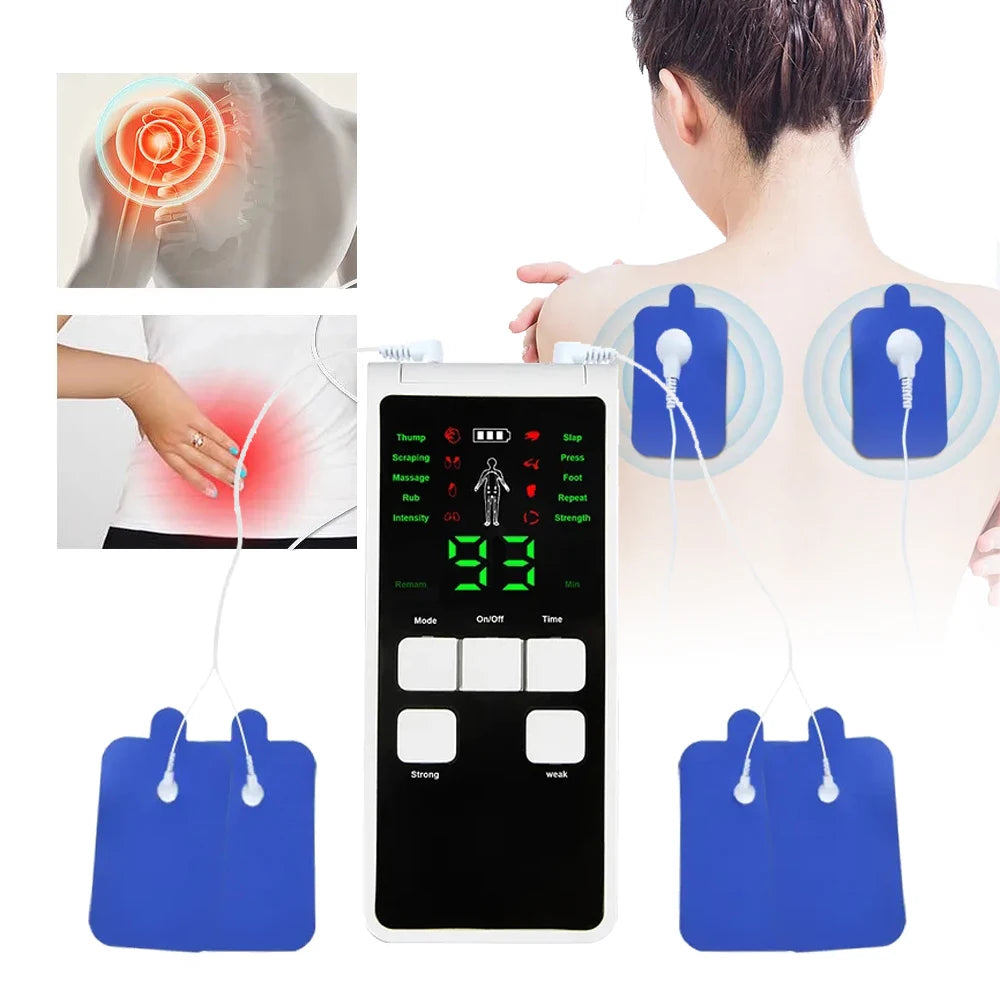 Med 8 forprogrammerede tilstande, justerbar massagetid og et dobbelt udgangsdesign kan du tilpasse din lindring. De to udgangsporte nederst giver dig mulighed for at bruge op til fire elektroder samtidigt for bredere eller multi-målrettet dækning, så du kan behandle nakke, skuldre, ryg eller andre områder efter behov. Det er et alsidigt værktøj til at slappe af i muskler, reducere stivhed og støtte daglig smertehåndtering—når som helst, hvor som helst.