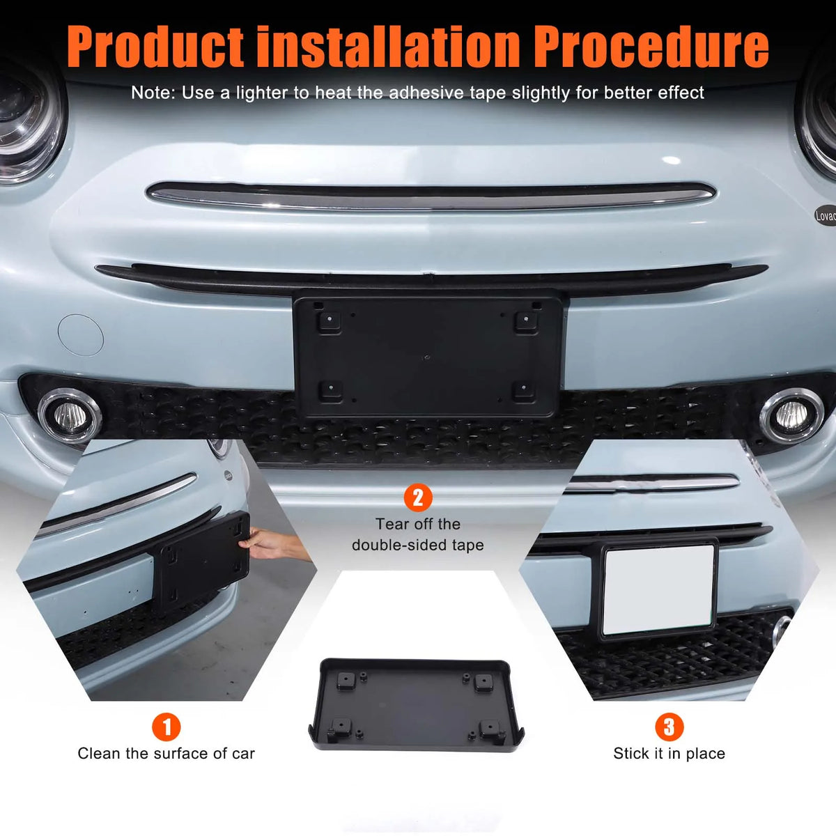 - Sikrer fast montering af forreste nummerplade på Fiat 500 modeller fra 2016 til 2025, hvilket hjælper dig med at overholde færdselsreglerne.