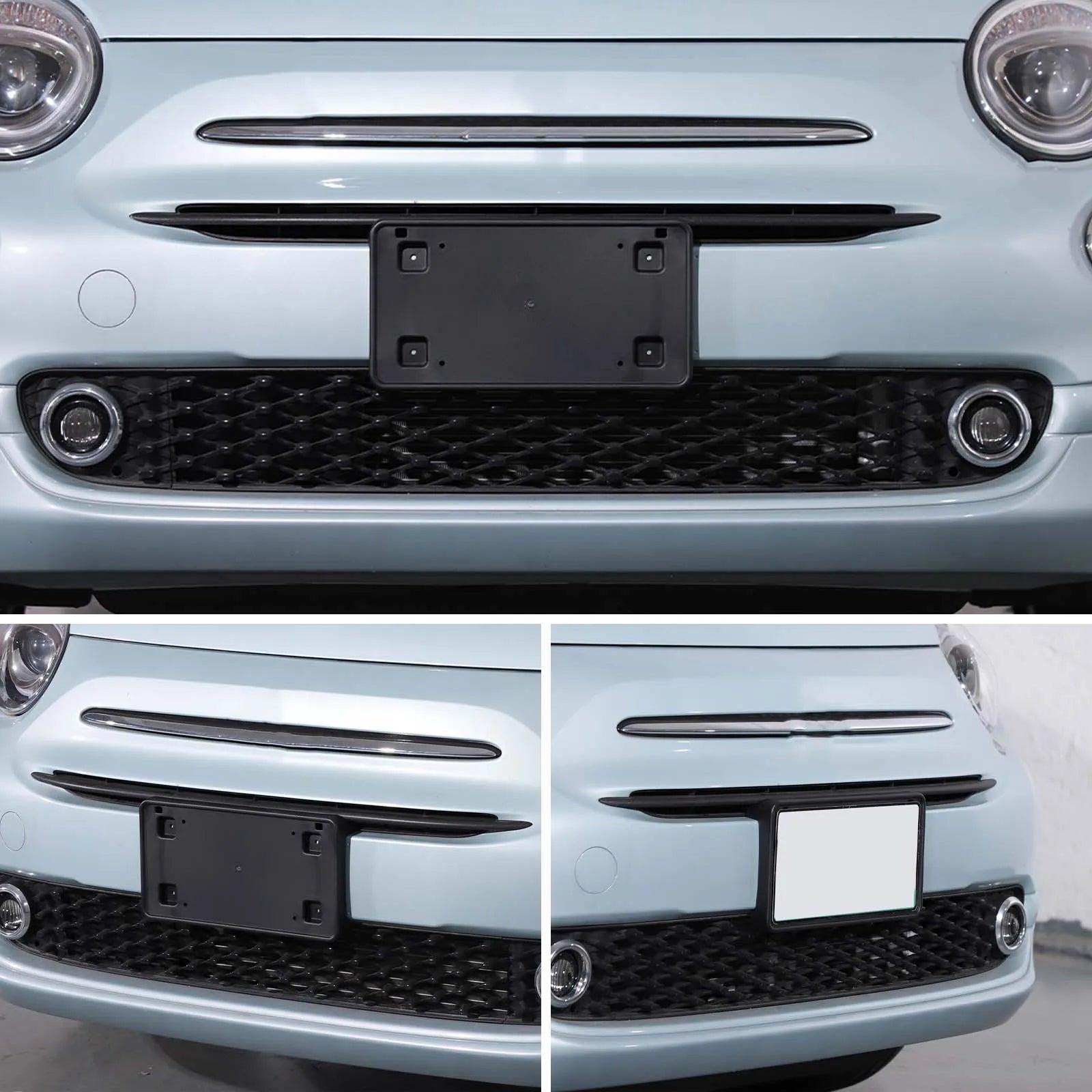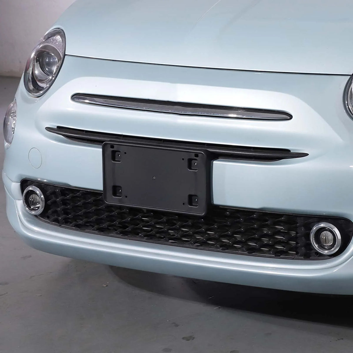 ABS sort front nummerpladebeslag Fiat 500 2016 til 2025