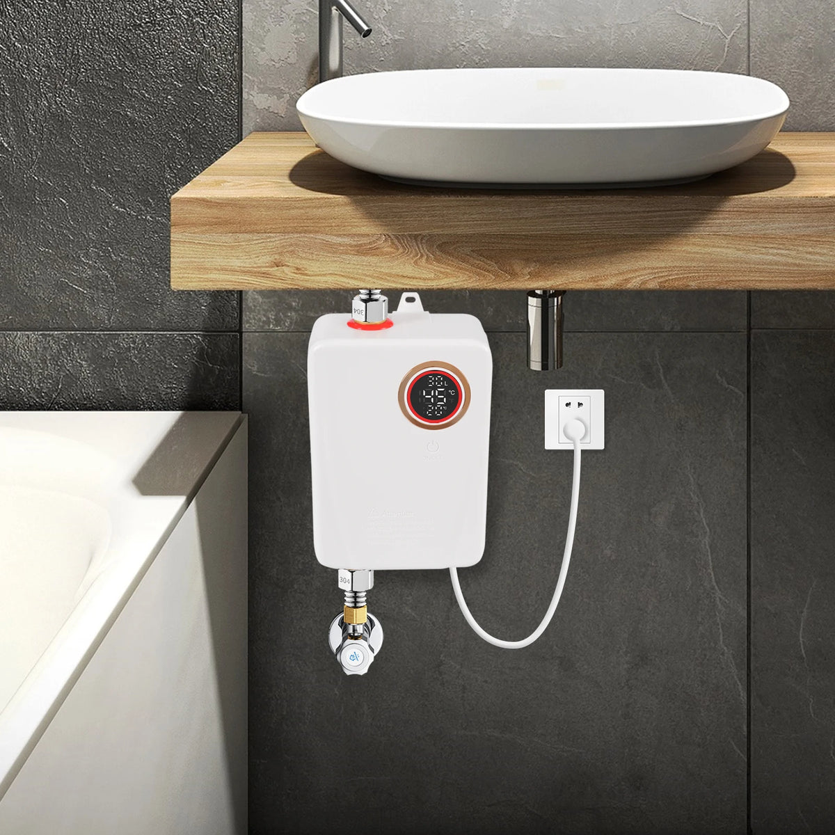 Oplev bekvemmeligheden ved øjeblikkelig varmt vand med vores AC220V Elektriske Vandvarmer, en slank, vægmonteret løsning perfekt til moderne hjem og virksomheder. Fremstillet af holdbart ABS og 304 rustfrit stål, leverer denne enhed hurtig opvarmning for at løse hverdagens problemer som kolde brusere eller ventetid på, at vandet varmes op. Uanset om du er i et travlt køkken, et kompakt badeværelse eller et delt kontor, giver den effektivt, efter behov varmt vand, hvilket hjælper dig med at spare energi og tid, mens du opretholder et behageligt temperaturinterval.