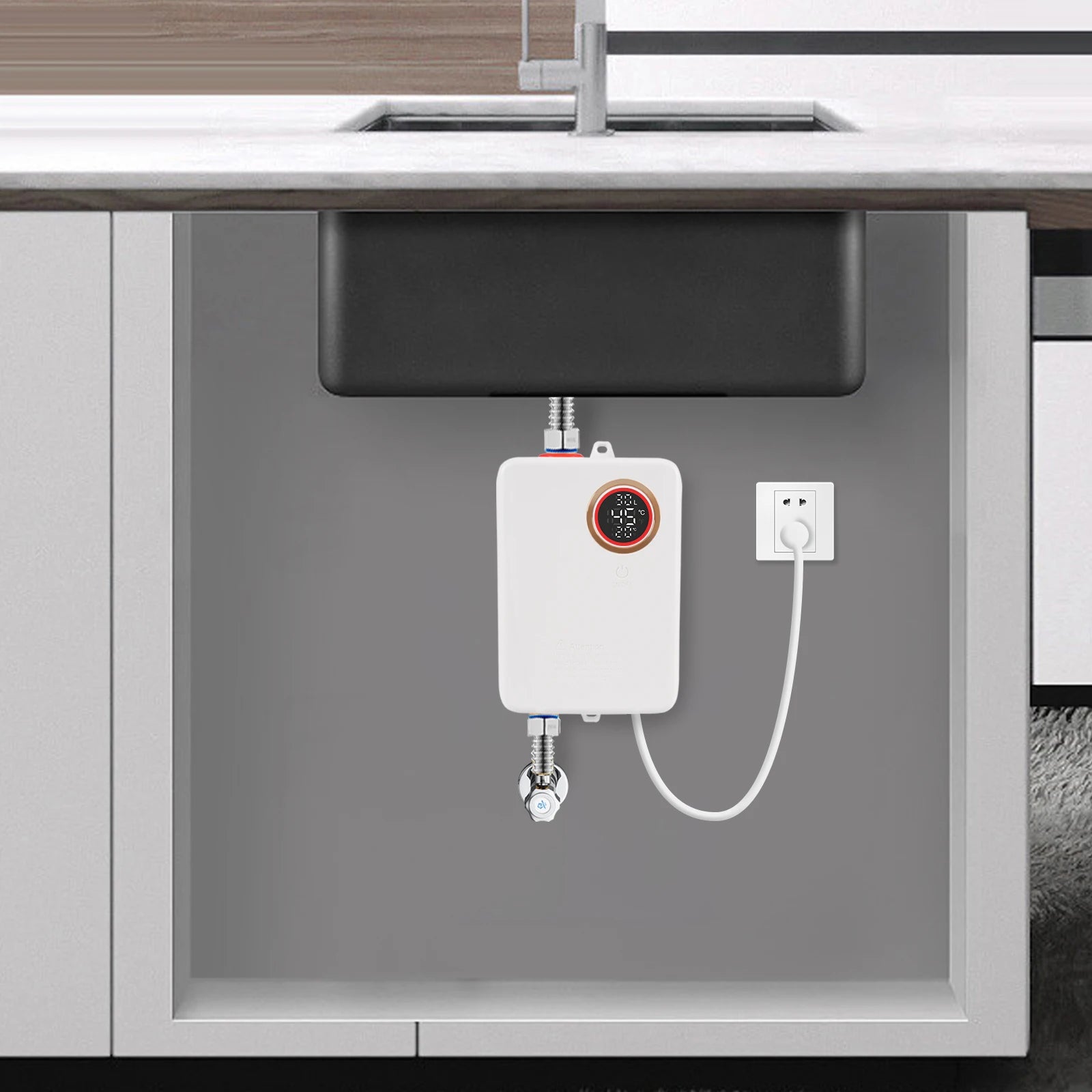 - Perfekt til hurtige brusere eller opvask i områder med lavt vandtryk, hvilket gør den ideel til lejligheder eller små husstande—juster blot LED-displayet til den ønskede varme.