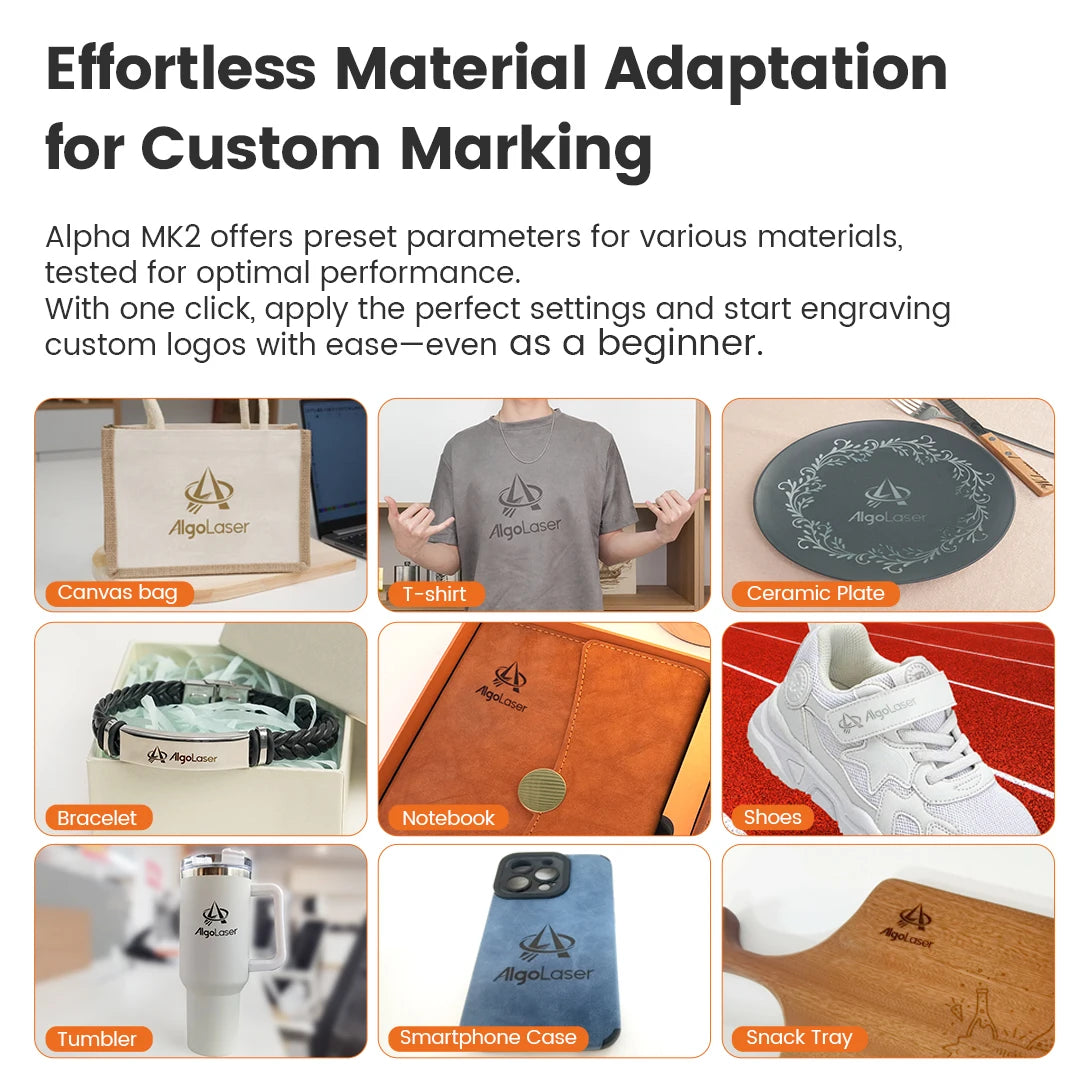 Mød AlgoLaser Alpha MK2 20W Laser Graver—en elite, alsidig skære- og graveringsløsning bygget til både DIY-entusiaster og små virksomheder. Huset i en robust aluminiumlegeringsramme, leverer den et pålideligt 400x400 mm graveringsområde og en ægte 20W COS laser modul til dybe snit og præcise detaljer. Med lynhurtige graveringshastigheder op til 20.000 mm/min, kan du bevæge dig fra koncept til færdigt stykke hurtigere end nogensinde, mens du opretholder enestående nøjagtighed.