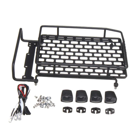 Opgrader din RC-trailrig med Jeep Wrangler Roof Rack Luggage Tray med LED-lysbjælke. Fremstillet af holdbar aluminiumslegering tilføjer denne tagbærer robust realisme samtidig med, at den giver en funktionel plads til tilbehør på skalamodeller. Den integrerede LED-lysbjælke udsender klart hvidt lys, forbedrer natlige eventyr og tilføjer et ekstra touch af autenticitet til din model. LED-bjælken tilsluttes modtagerens CH3-kanal og kan styres med din RC-fjernbetjening, hvilket giver bekvemme lysmuligheder uden besvær med ledninger.