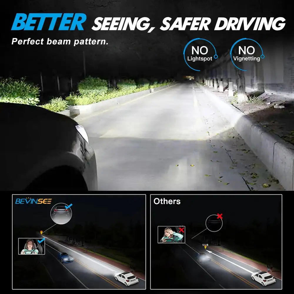 Bevinsee V35 9006 LED Hovedlyspære CANBUS til universelle 12V køretøjer leverer kraftig dagslys-lignende belysning med 6000K hvidt lys. Dette højtydende par kombinerer 90W strøm og 16000 lumen for at oplyse vejen foran, ved hjælp af CSP 3570 LED-chips for effektiv, pålidelig lysstyrke. Designet til at passe til 9006 hovedlyssokler og kompatibelt med 9012/HIR2 tågeforlygter, giver disse pærer en enkel opgradering for sikrere natkørsel.