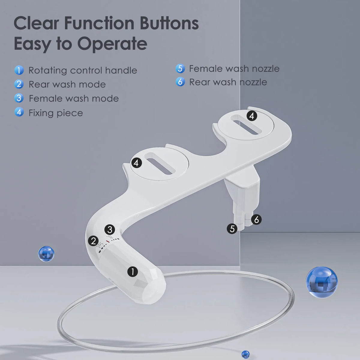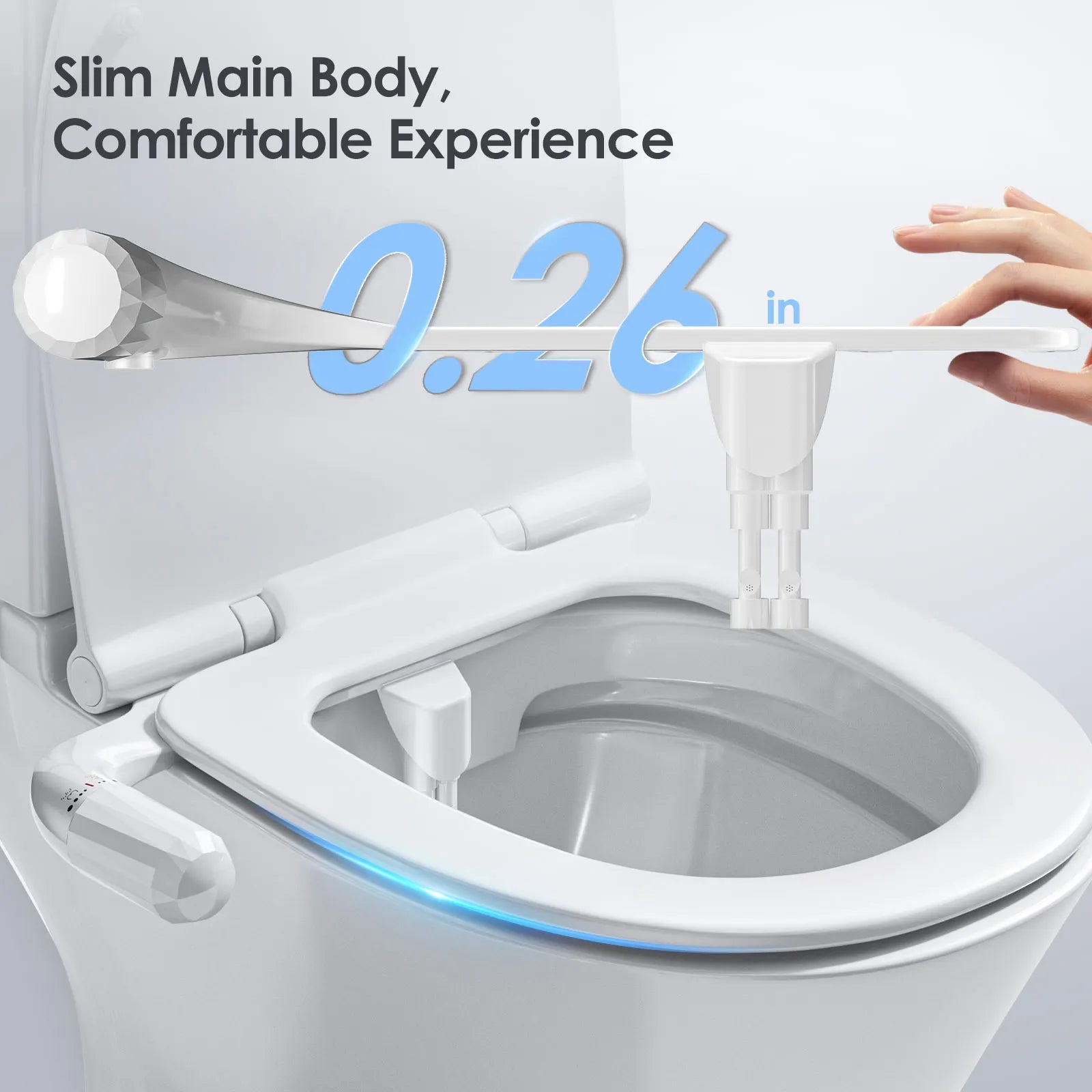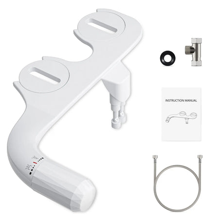 Oplev overlegen renhed med Ultra Thin Dual Nozzle Bidet Attachment Non Electric Toilet fra Jugacool. Denne ultra-slanke bidet monteres under de fleste standard toiletsæder og leverer to forskellige rengøringsmetoder gennem dobbelte dyser: en kraftig bagvask til grundig rengøring og en blid kvindevask for behagelig pleje. Det kompakte, ikke-elektriske design betyder, at installationen er enkel, sikker for alle aldre og energifri, hvilket hjælper dig med at spare på toiletpapir samtidig med at forbedre hygiejnen.