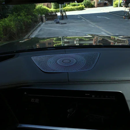 Forbedr dit BMW-interiør med BMW X5 Dashboard Speaker Cover Trim i sort aluminiumslegering. Fremstillet af holdbar aluminiumslegering og med en elegant sort finish, tilføjer denne trim et premium udseende samtidig med at den beskytter dashhøjttalerområdet mod ridser og daglig slitage. Den er designet til at passe til BMW X5 G05 (2019-2022), X6 G06 (2020-2022) og X7 (2019-2021), og leverer et raffineret, sammenhængende kabineudseende uden at ændre dashboardets layout.