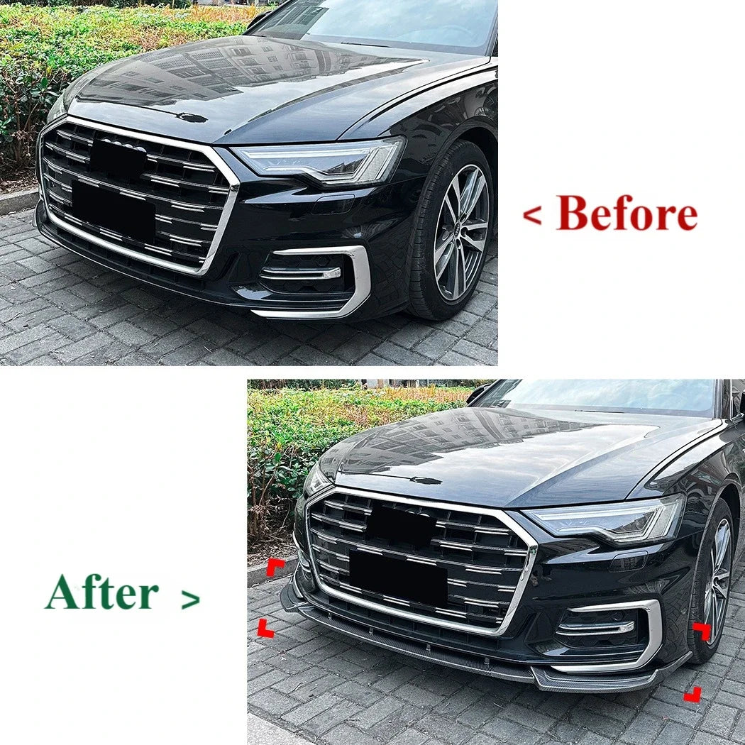 Forbedr stancen og personligheden af din Audi A6 C8 Sline med dette Carbon Look Lower Diffuser Splitter Chin Body Kit Canards Trim. Designet til 2018–2023 A6 C8 Sline modeller, kombinerer denne frontstødfanger lip spoiler en dristig finish inspireret af carbonfiber med holdbar ABS-konstruktion for en letvægts, modstandsdygtig udvendig opgradering. Den præcisionsdesignede diffuser og hageprofil integreres glat med fabriksstødfangeren og leverer et aggressivt, race-inspireret look uden at gå på kompromis med hverdagens praktikalitet.