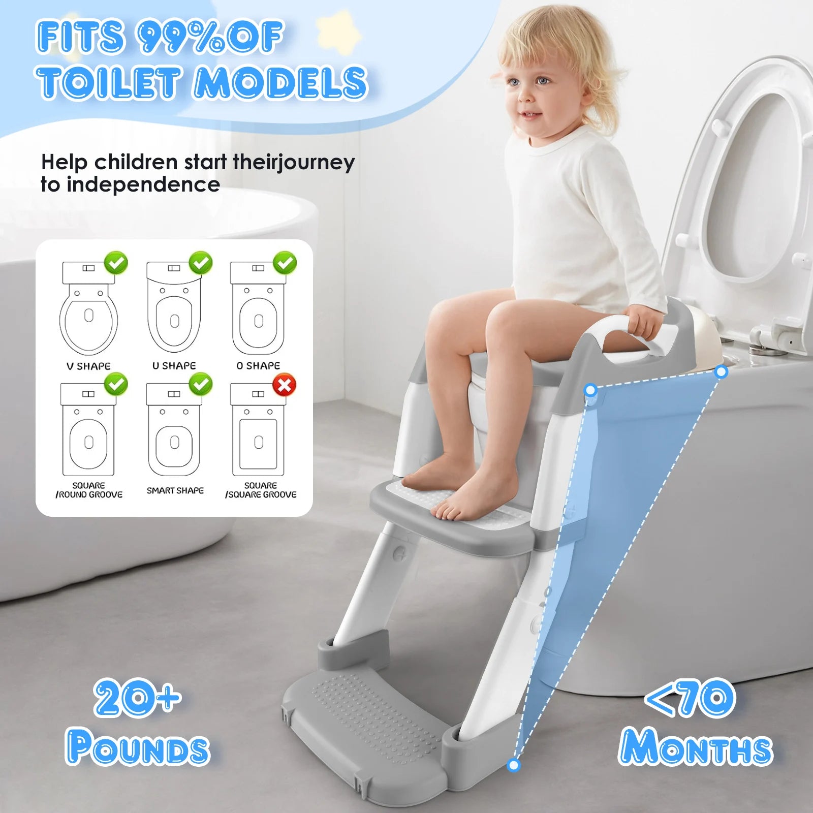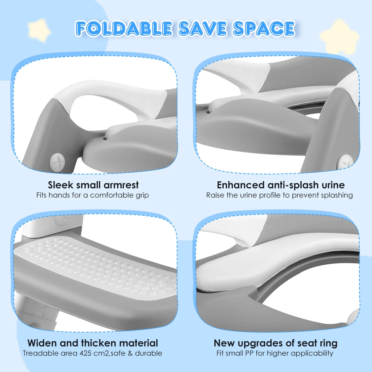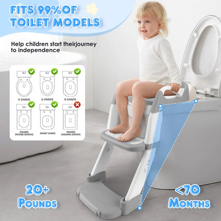 Sikkerhed er indbygget med skridsikre trin og robust konstruktion, der giver et sikkert greb, når dit barn går op eller ned. Det ergonomisk formede sæde med bløde kanter tilbyder behagelig siddekomfort og opmuntrer børn til at sidde trygt under hvert badeværelsesbesøg. Nem at samle og enkel at rengøre, passer dette design pænt ind i små badeværelser uden at gå på kompromis med funktionaliteten.