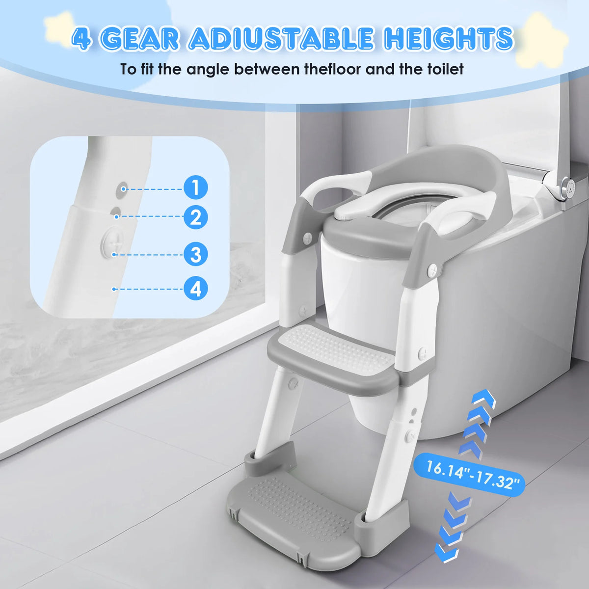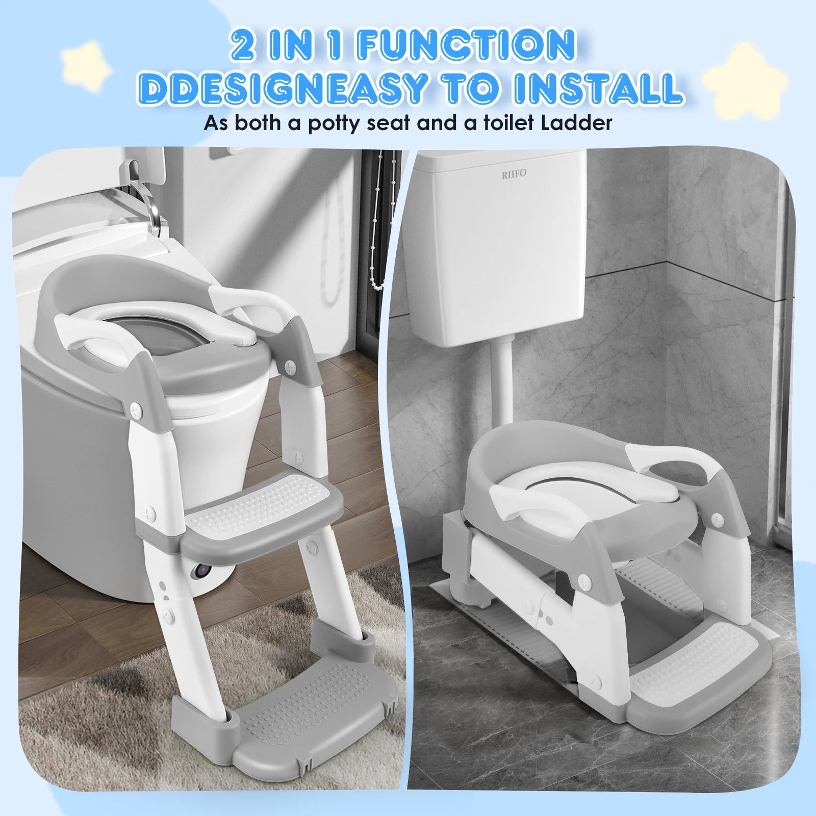 - Effektiv toilettræning: 3-i-1 designet giver børn et stabilt sæde, velkendte trin og en gradvis vej til selvstændig brug.