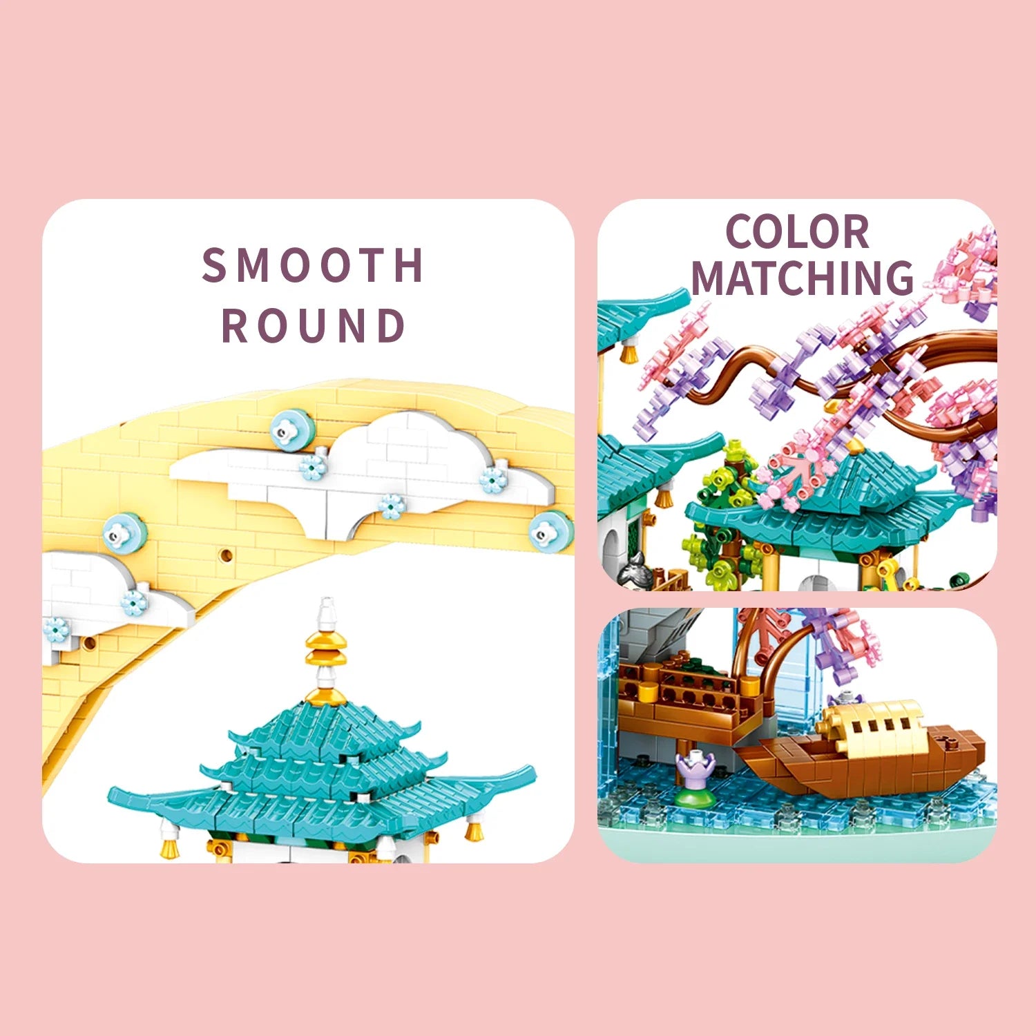 Kinesisk arkitektur bygning blok sæt – kreativ DIY samling sjov