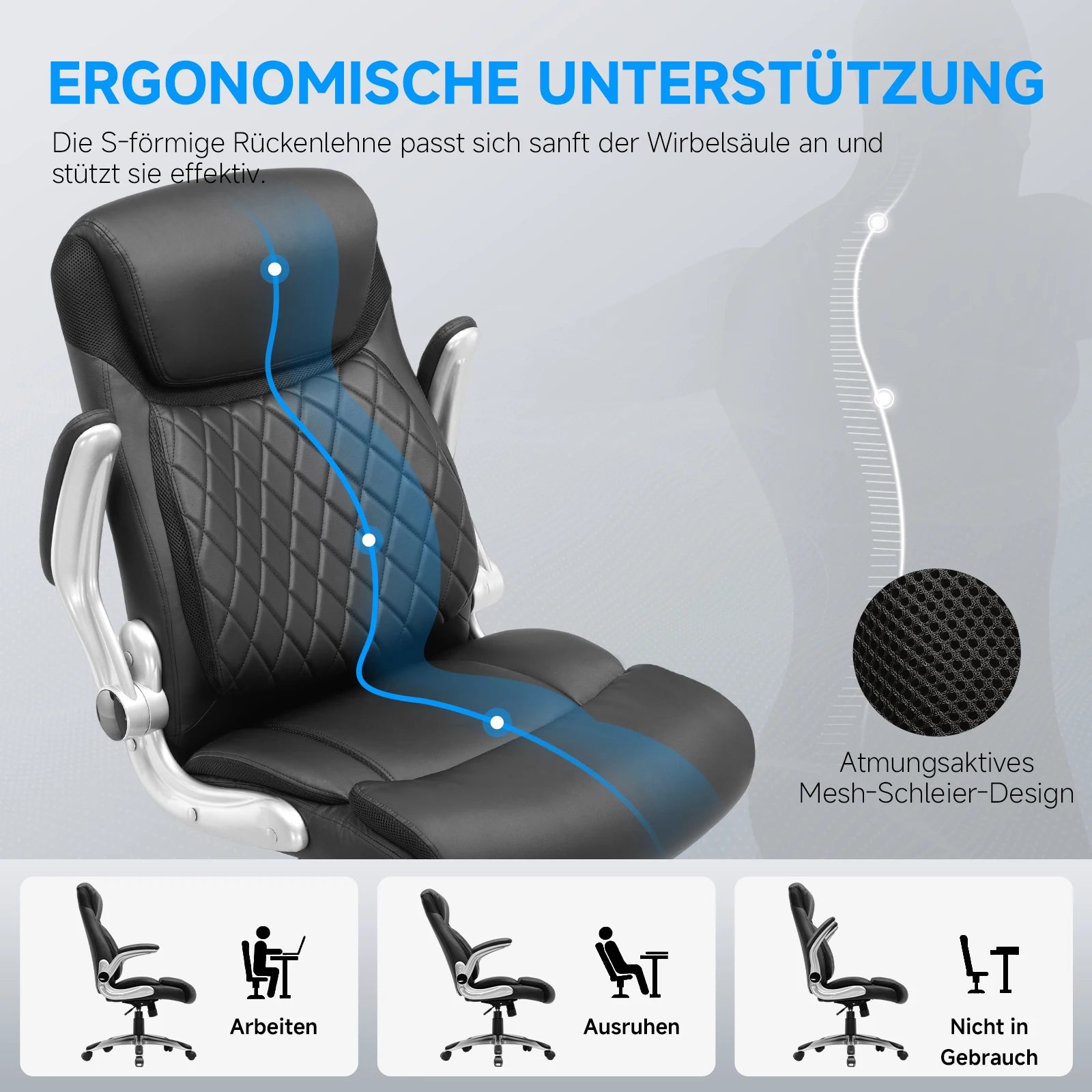 Oplev forbedret komfort og produktivitet med COMHOMA Ergonomisk Kontorstol med foldbare armlæn. Denne executive stol er designet efter ergonomiske principper for at støtte din ryg med et S-formet ryglæn, der tilpasser sig din krop og giver langvarig lindring af ryg- og lændetræthed. Stolen har en vippefunktion på 90–135°, som giver dig mulighed for at vippe og læne dig blidt tilbage under arbejdet, hvilket hjælper med at reducere stivhed og forbedre fokus hele dagen.