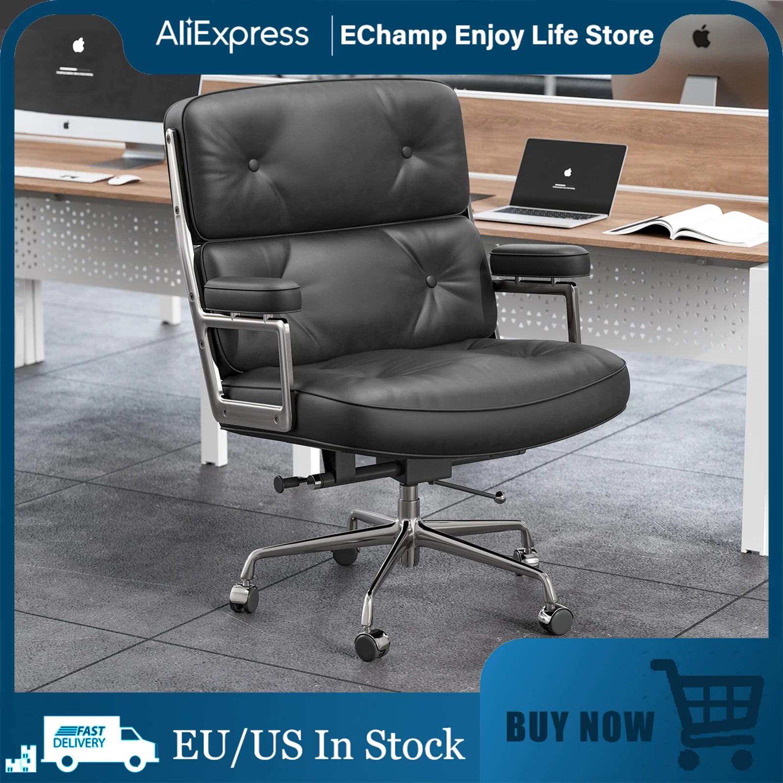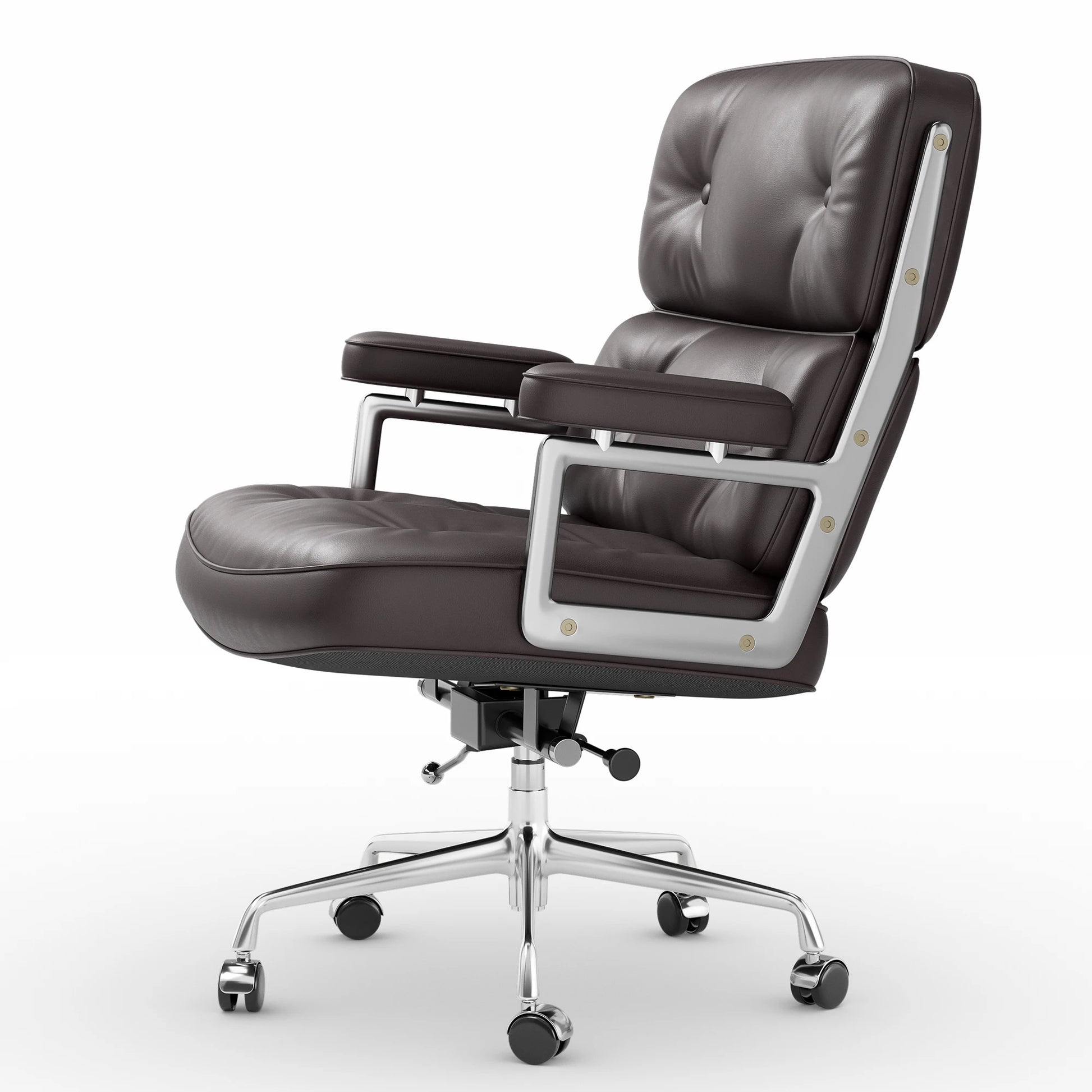 Ergonomisk Ægte Læder Kontorstol Med Aluminiumshjul