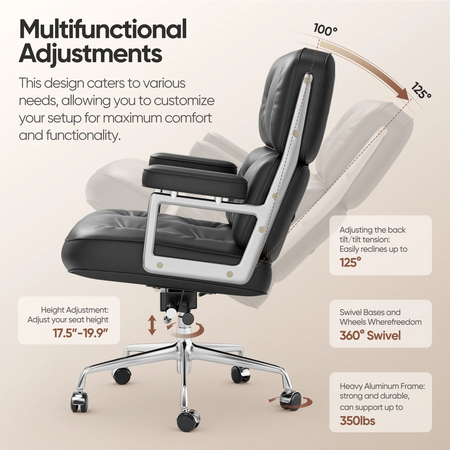 Oplev langvarig komfort og professionel stil med den ergonomiske kontorstol i ægte læder med aluminiumsdæk. Designet til længere arbejdsperioder kombinerer denne stol premium materialer med gennemtænkt ingeniørkunst for at støtte din kropsholdning, reducere træthed og holde dig produktiv hele dagen.