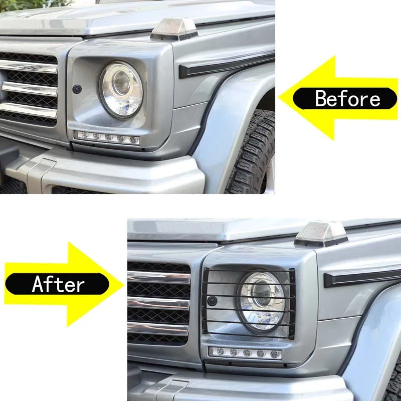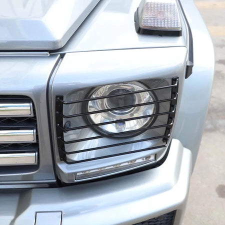 Beskyt dine Mercedes G-Class W463 forlygter med dette sorte netdæksel. Fremstillet af højkvalitets kulstofstål, beskytter dette beskyttelsesnet mod sten, snavs og dagligt slid, samtidig med at det forstærker det robuste, premium udseende af din G-Wagon. Specifikt designet til 2004-2018 Mercedes-Benz G-Class W463 modeller, installeres det hurtigt med den medfølgende bilklæbende tape, hvilket sikrer en sikker pasform uden boring eller permanente modifikationer. Bygget til at modstå barske vejforhold kombinerer dette sorte netdæksel holdbarhed med en lavprofil, stilfuld finish, der komplementerer dit køretøjs linjer.