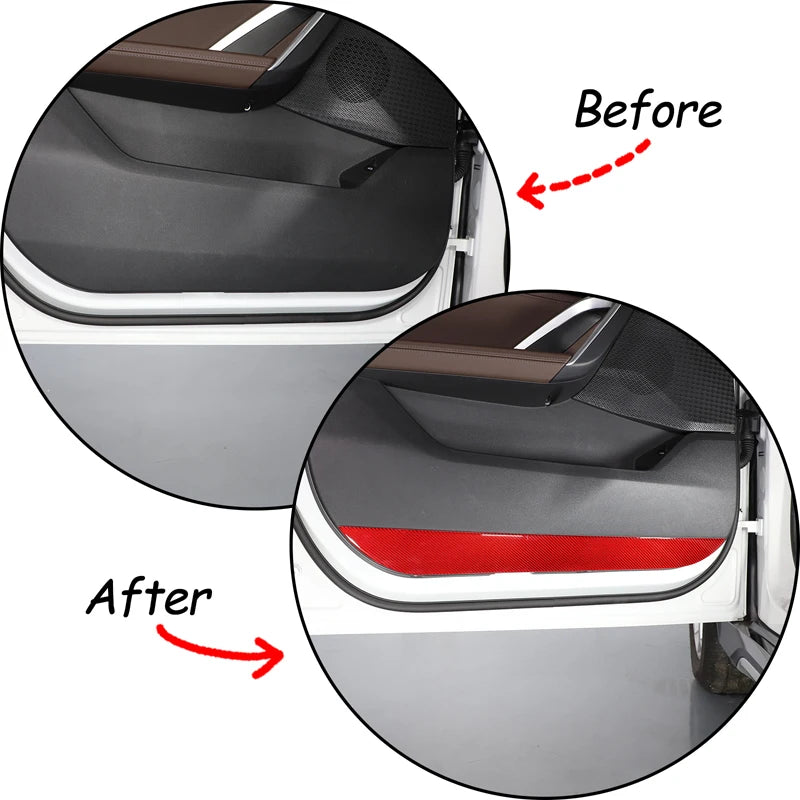 Opgrader dit BMW X1 interiør med Carbon Fiber Front Door Anti Kick Panel Trim — en præcis, blød kulfiberformning designet til at beskytte dørtrin og løfte kabinens stil. Fremstillet til BMW X1 iX1 U10 U11 modeller fra 2023-2024, bringer dette interiørtilbehør et premium, sportsinspireret look samtidig med at det beskytter områder med høj trafik mod slidmærker og ridser. Produceret i en kvalitets ISO9001-certificeret fabrik og færdiggjort i elegant sort eller dristig rød, komplementerer det sømløst moderne interiører. Trimmen er 100% ny med æske og har en praktisk dobbeltsidet klæbende bagside for nem installation. Bekræft venligst, at delen matcher billedet før installation. Hvis du har spørgsmål, kontakt os for hjælp.
