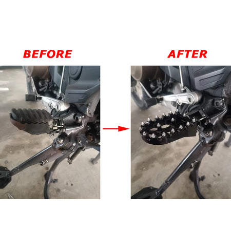 Fremstillet af CNC-smedet 7075 aluminium (T7), tilbyder disse fodstøtter enestående styrke i forhold til vægt. Tænderne er lavet af hærdet stål for langvarig slidstyrke, og de er aftagelige og udskiftelige for nem vedligeholdelse. Anodiserede finish i Rød, Blå, Guld, Sølv og Sort modstår falmning og rust, så din motorcykel ser skarp ud tur efter tur.