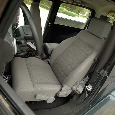 Opgrader dit Jeep Wrangler JK 2-Dørs interiør med Vinidname Jeep Wrangler JK 2 Dørs Nappa Læder Sædeovertræk Sæt. Fremstillet af kunstlæder med et Nappa læderlook, leverer disse sædeovertræk en premium følelse, mens de beskytter dine originale sæder mod daglig slitage og spild. Designet til Jeep Wrangler JK 2-Dørs modeller fra 2006 til 2010, tilbyder de en fire-sæson pasform, der holder dit kabine ser frisk og komfortabel ud på hver eventyr.